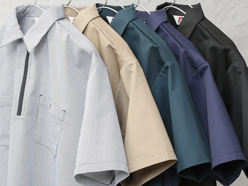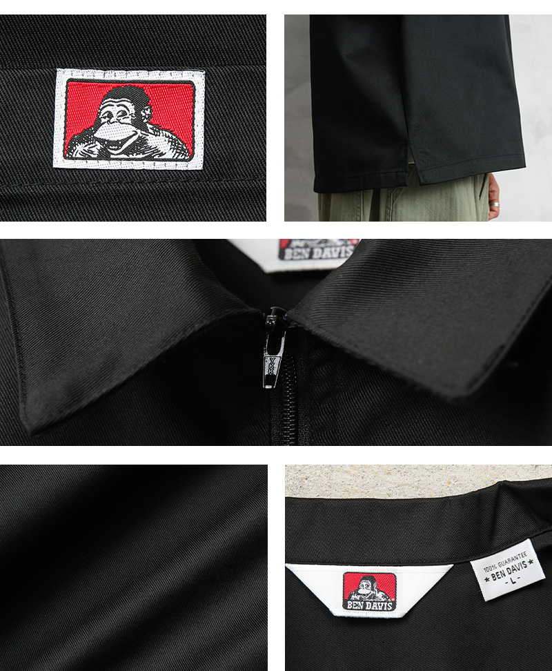 BEN DAVISからお馴染みのゴリラピスネームがワンポイントになったワークスタイル定番のハーフジップシャツが登場しました。生地には、ポリエステルとコットンを混紡した素材を使用。ポリエステルの軽やかさと耐久性に、コットンならではの自然な風合いで、快適な着心地を実現しています。シワになりにくく、程よいハリ感のある生地は、デイリーに気兼ねなく着られる実用性も魅力です。