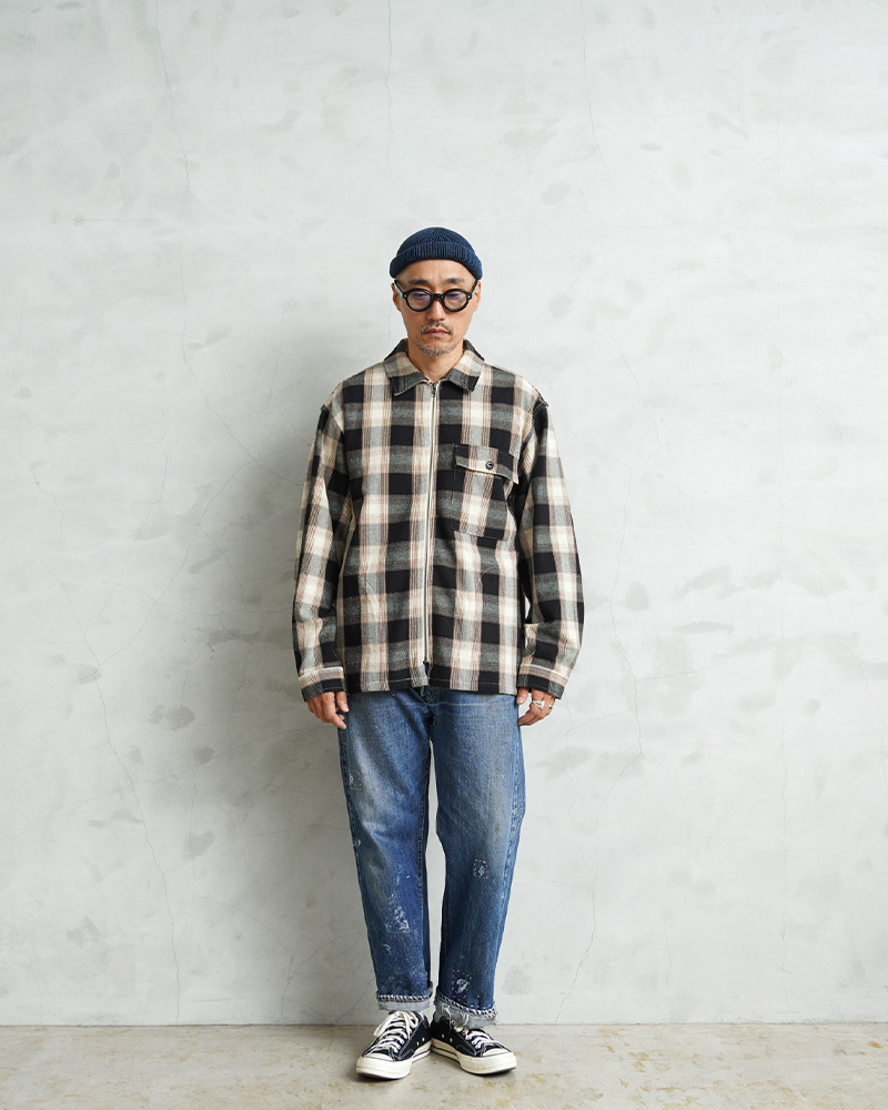 BIG MIKEから、丈夫で重厚感のあるヘビーフランネル生地を使用した、シャツ ジャケットの登場です。 コットン100%を使用した、丈夫で重厚感のあるヘビーフランネル生地を使用。厚手ながらも柔らかく肌触りの良い素材は、防寒性に優れつつも快適に着用可能です。またジップアップ仕様で着脱もスムーズなうえ、風の侵入を防ぎつつスマートなシルエットを実現しています。 シャツジャケットの定番スタイルを踏襲しつつ、機能性を高めるためにポケットを多数装備。胸元のフラップポケットとサイドのスラッシュポケットは収納力があり、スマートフォンや小物の持ち運びに便利です。また、ボタン仕様の袖口が冷気の侵入を防ぎ、保温効果を高めています。また猫目ボタンを採用しているので、糸がくぼみのところにあり擦れるのを防いでくれます。 シンプルで飽きのこないデザインはカジュアルなデニムスタイルからワークウェアまで幅広くマッチし、シャツ感覚で羽織れるため季節の変わり目に重宝する一着。ヘビーフランネルの素材感がコーディネートに深みと存在感をプラスし、耐久性と丁寧な作りが長く愛用できる魅力となっており、BIG MIKEならではのワークウェア品質を感じられる秋冬のマストアイテムです。 |