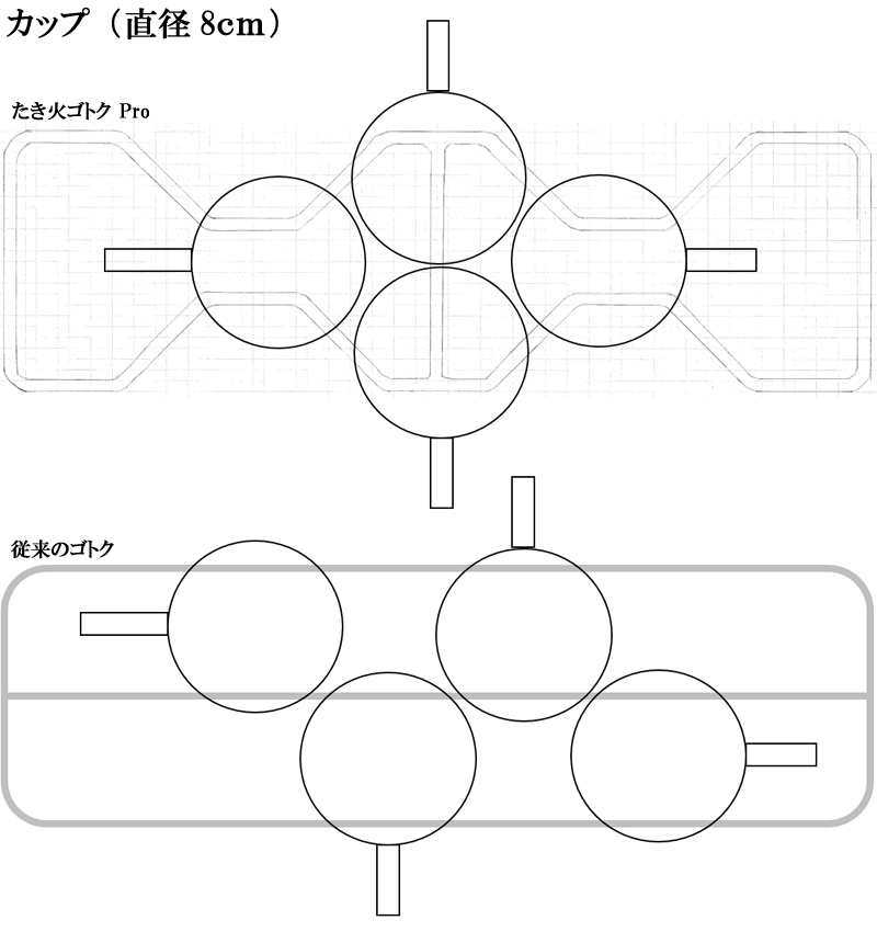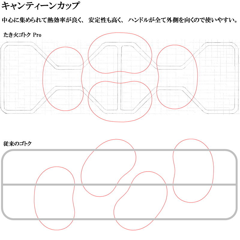 | 商品説明 | 純チタン中空パイプを採用した、超軽量、薄型のたき火専用ゴトクです。 たき火ゴトクProは、あらゆるクッカーを、焚き火の中心に集結させやすいように設計されています。 片側が少しだけテーパー状に狭まっているのは、パッキングの際に、荷物の隙間に滑り込みやすいのと、置くときに片側が狭いほうが、フレキシブルな対応が可能なためです。 直火はもちろん、お手持ちのたき火台に適合するサイズでしたら、焚き火台の上で調理するためのゴトクとしてもご利用いただけます。 |