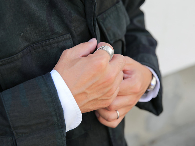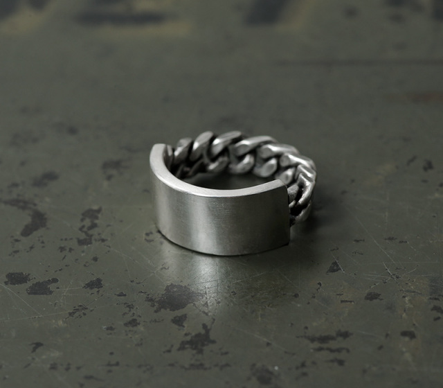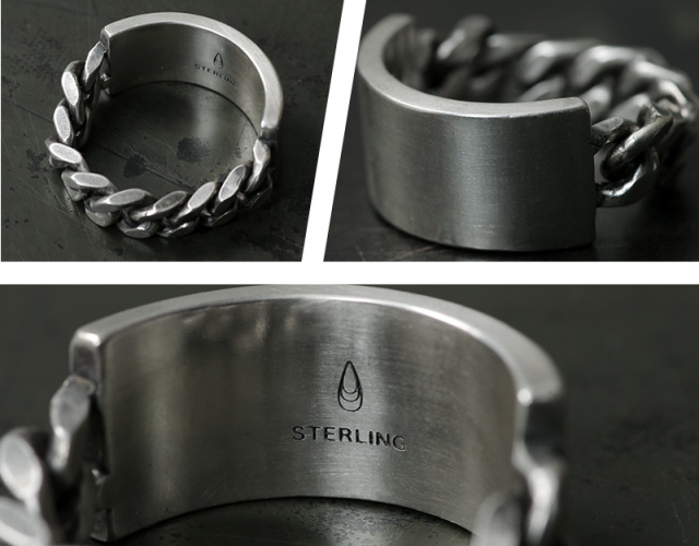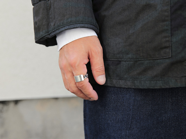 シルバー925で、IDブレスのようなデザインリングは、とても良い感じです。