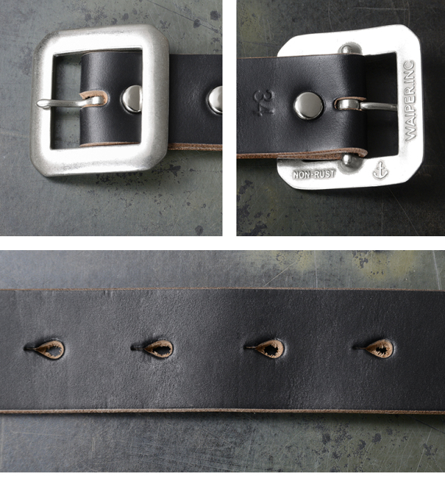 ベルトのレザーは、HORWEEN / ホーウィン社の『CHROMEXCEL / クロムエクセル』を使用。 ホーウィン社の伝統と技術が詰まった革で、その柔らかさ、耐久性、豊かなオイル感、そして抜群なエイジング。 使い込むほどに魅力が増すクロムエクセルレザーの製品は長く愛用できる逸品です。 ベルトの幅も一般的なサイズより少しこぶりにすることで、ベルトループが細めのワークパンツにも着用できます。 剣先は「ギャリソンカット」と呼ばれる半船形に仕上げ、WAIPERオリジナルのデザインを刻印しました。