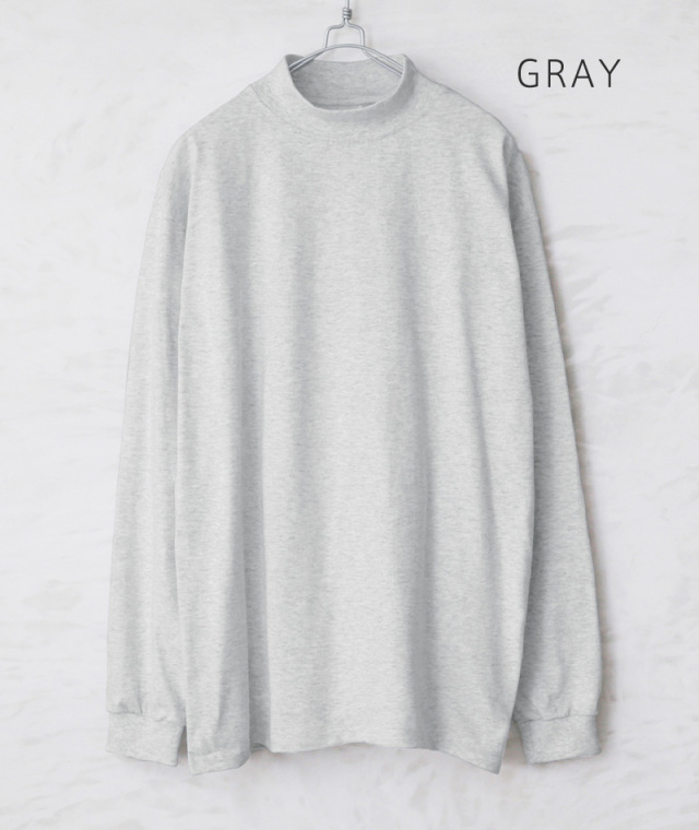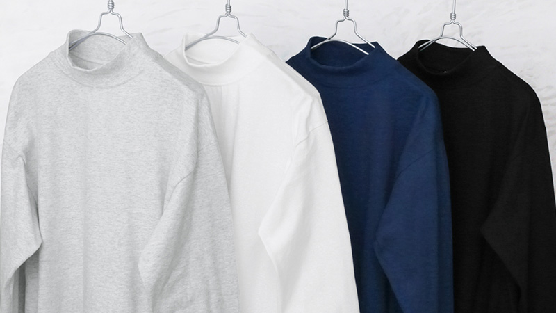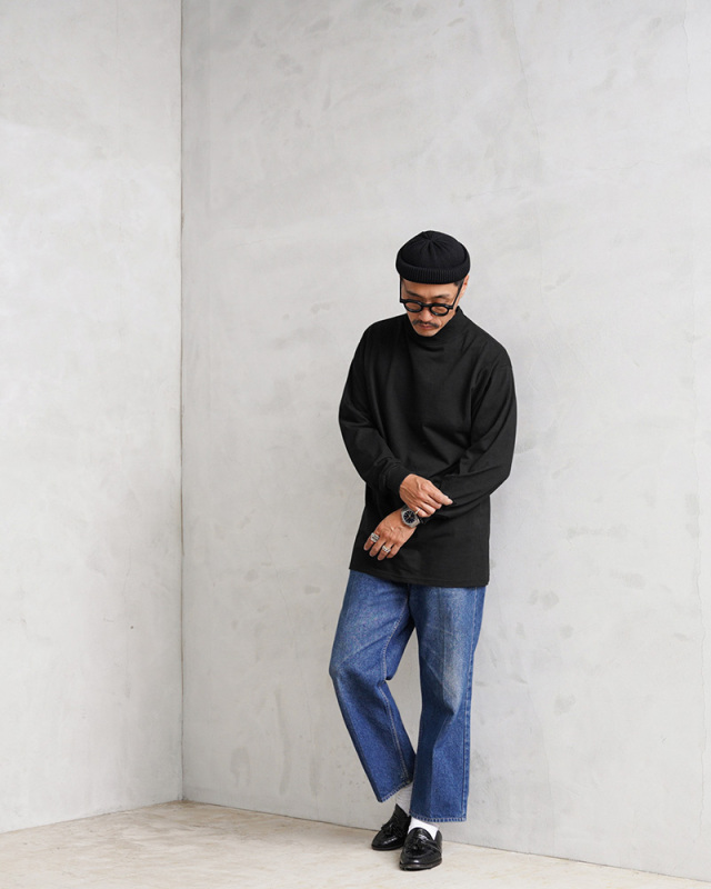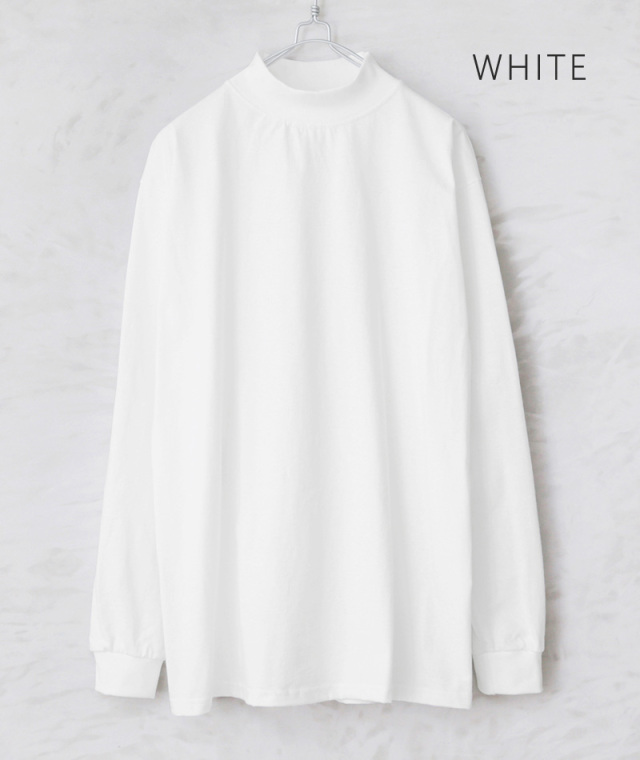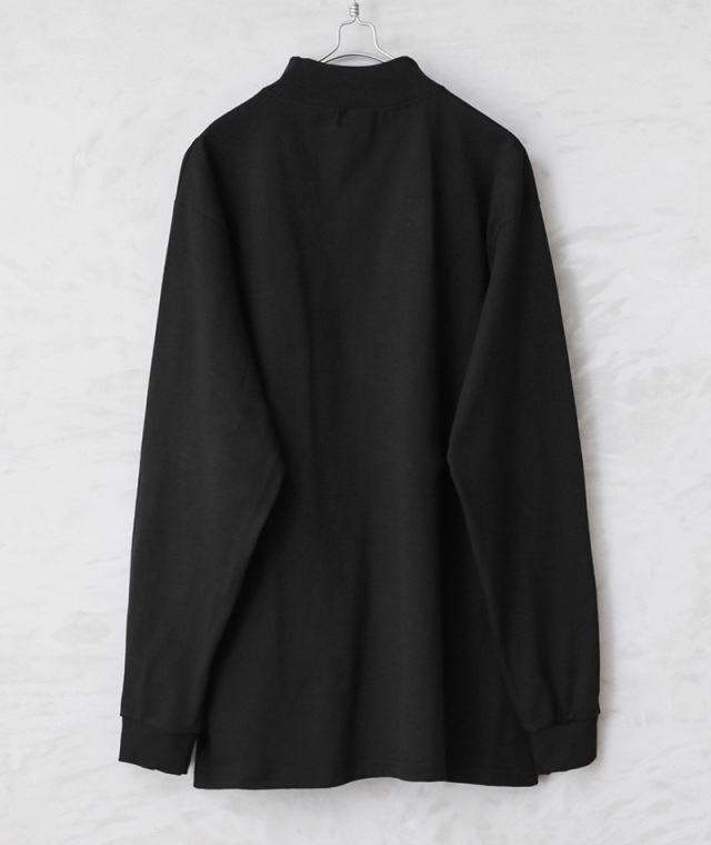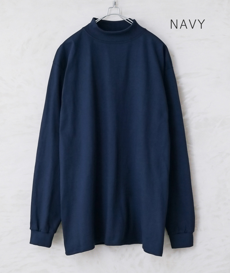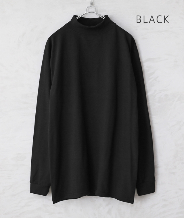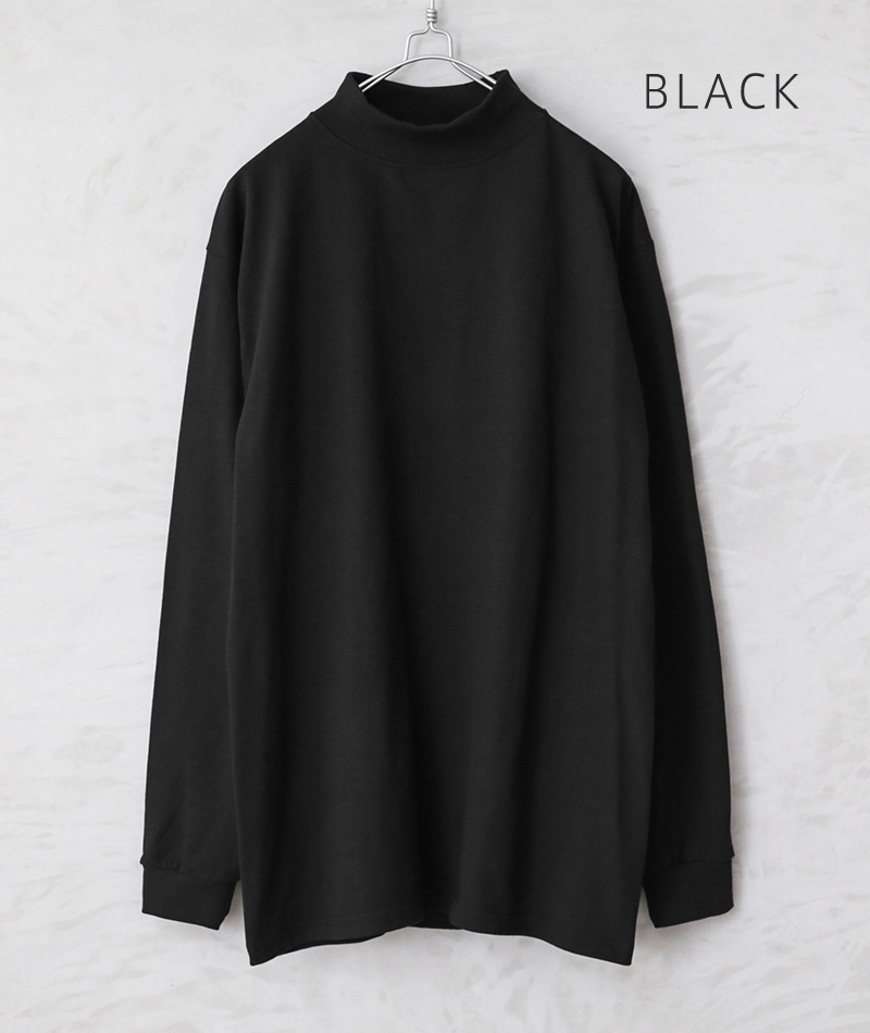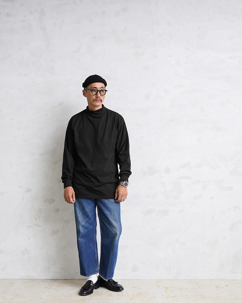 生地にはしなやかで触り心地の良いコットン100%を使用しているので肌なじみがよく、厚みもあるので透ける心配もなく一枚で着用していただけます。トレンド感のあるややゆったりとしたシルエットに、高すぎない絶妙なバランスのモックネックデザインと袖口のリブが落ち着いた雰囲気を醸し出します。シンプルなデザインなので、デニムやチノパンなど様々なボトムスとも相性抜群◎ またトップスのメインとしてはもちろん、シャツやパーカーとのレイヤードスタイルもオススメなアイテムです。