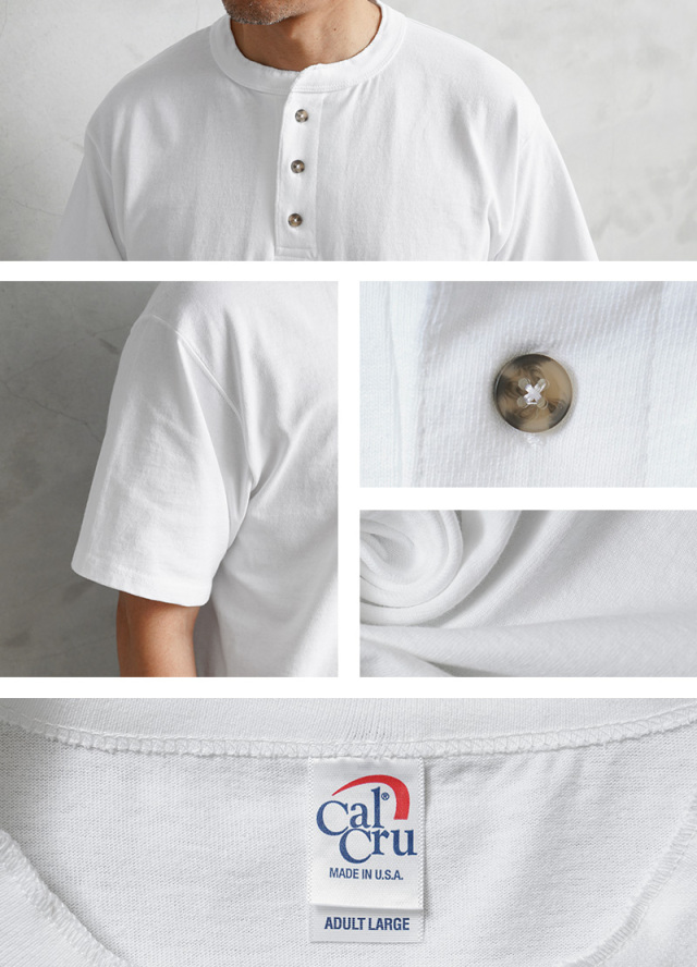| 商品名 | Cal Cru カルクルー CLCR002 3 BUTTON ヘンリーネック Tシャツ MADE IN USA |