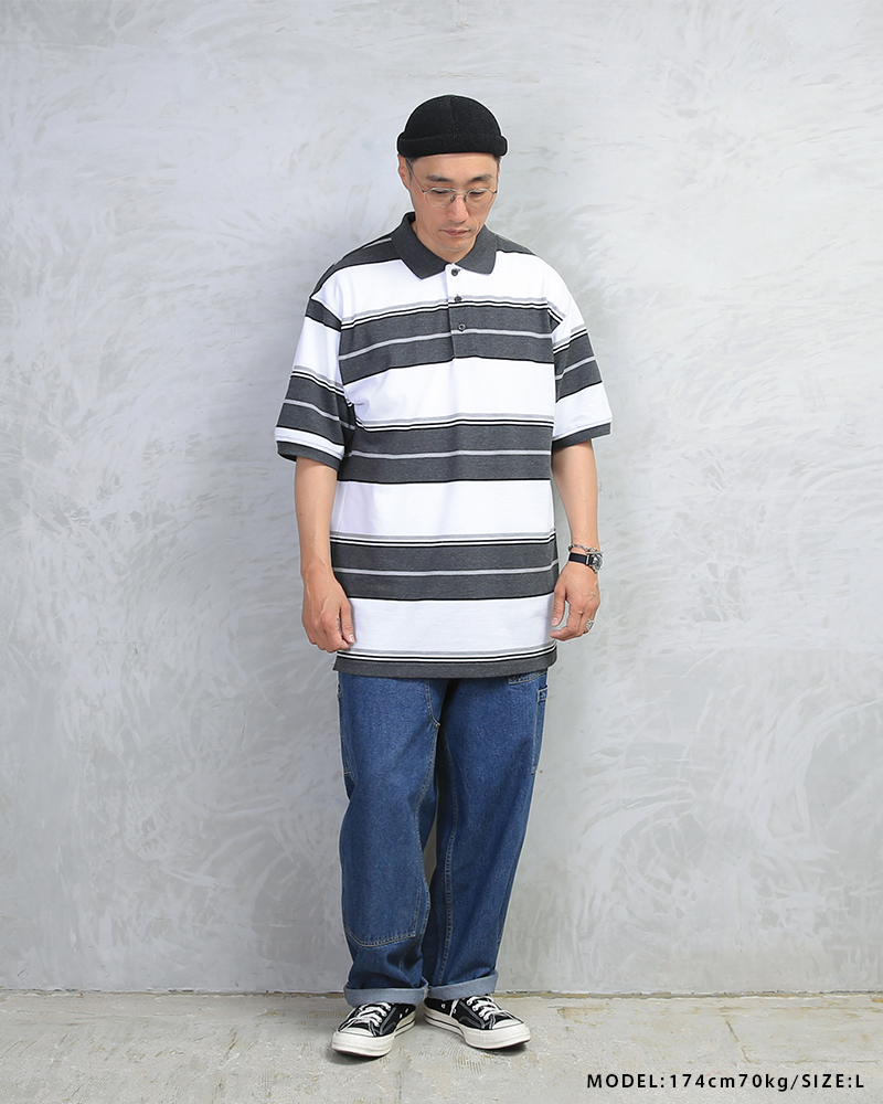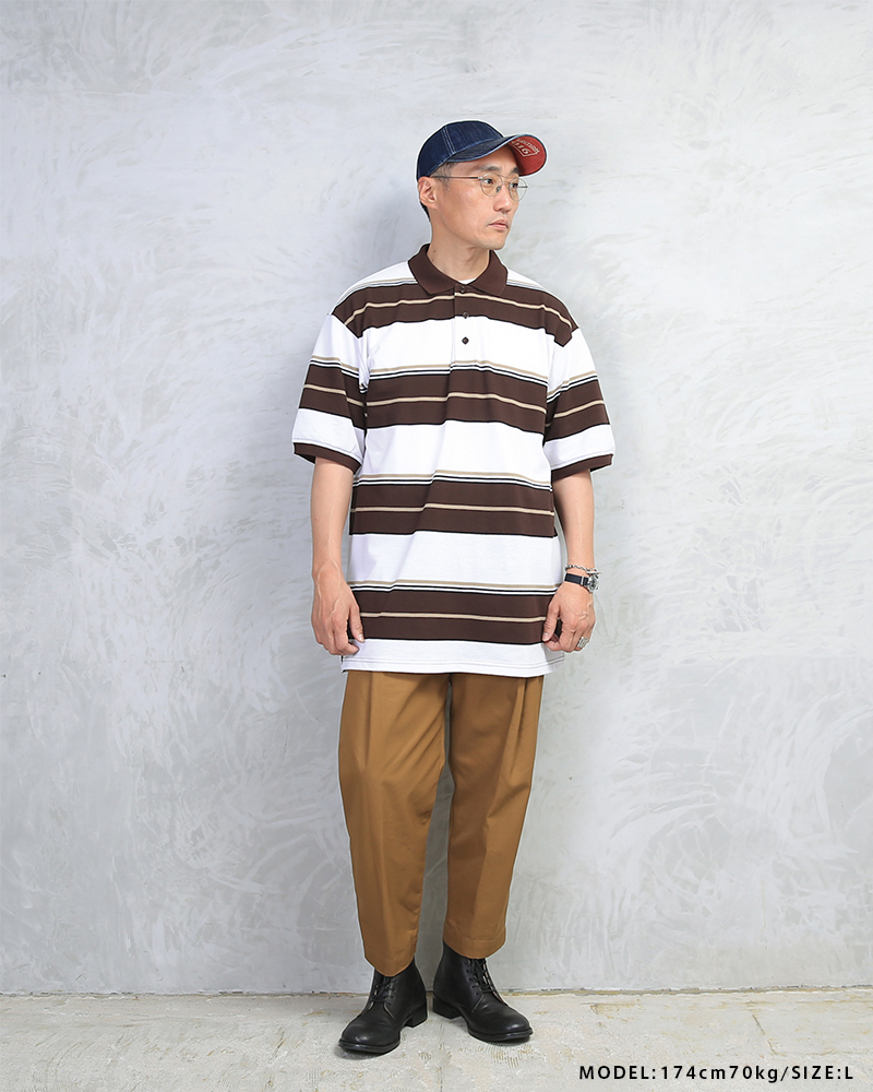 | 商品説明 | Cal Top ストライプ ボーダー ポロシャツのご紹介です。 品名:STRIPE BORDER POLO SHIRTS 品番:CLTP185 アメリカ西海岸発の老舗ブランド「Cal Top(キャルトップ)」よりボーダー柄のポロシャツが登場しました。 丈感や袖の長さなど昔から変わらずのルーズなシルエットがトレンド感を演出してくれるのに加え、太さの異なるボーダーのレトロ感と、トレンドのビッグシルエットのマッチングが絶妙な一着。 オリジナル刻印が入った3つボタン、袖口はリブつき。裾のサイドにはスリット入りなど細部のディテールにもこだわっております。 インナーに7分袖やロングスリーブのカットソーを合わせる重ね着もお勧めで、タックインスタイルなどクラシカルな西海岸のスタイルを現代にアップデートしてコーディネート出来る一着です。 オーバーサイズの着こなしで、ユニセックスでご着用いただけます。 |