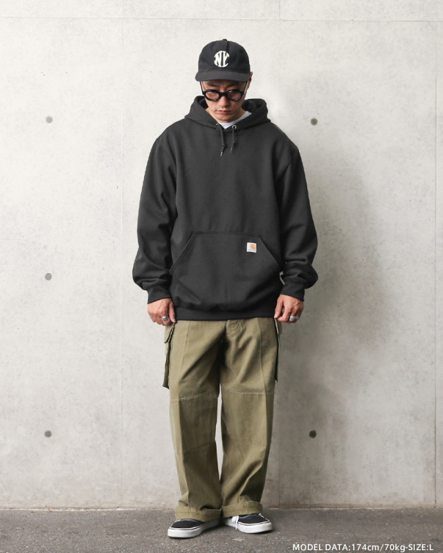| 商品説明 | Carhartt カーハート K121 ミッドウェイト プルオーバー フーデッドスウェットのご紹介です。 品名:Carhartt MIDWEIGHT HOODED PULLOVER SWEATSHIRT 品番:K121 頑丈な作りとシンプルなデザインの裏起毛プルオーバーパーカー。 大きめのカンガルーポケットとブランドタグがポイント。 USサイズでゆったりと着ていただけるトレンド感のあるシルエット。 ワークウェアとしても使えるタフな10.5オンスの生地と“ストリングトリプルステッチ”製法仕様、程よいフィット感の袖リブと起毛裏地で暖かく快適な着心地で、肌寒い季節にヘビロテしたくなる一着。 老舗ワークウェアブランドらしく、タフな仕様で長く愛用頂ける一枚です。 ※HEATHER GREYのみ襟元内側のタグデザインが異なります。 |