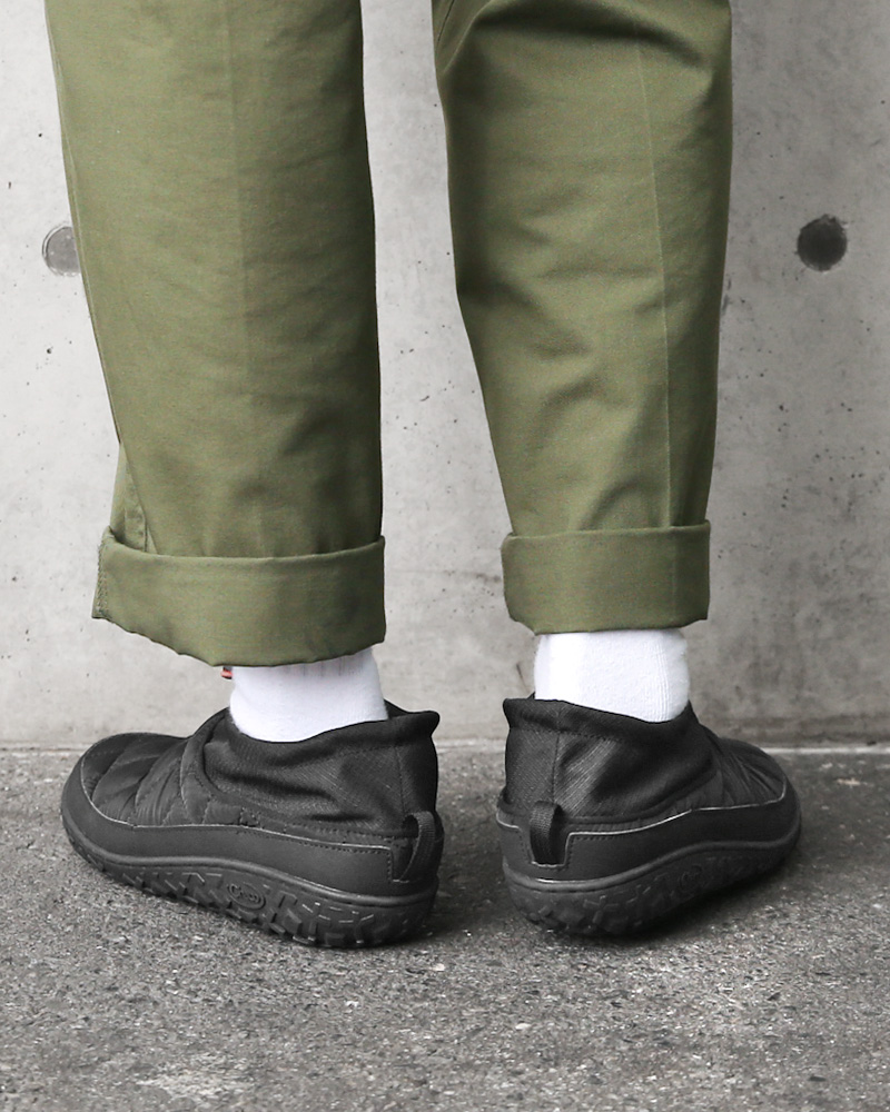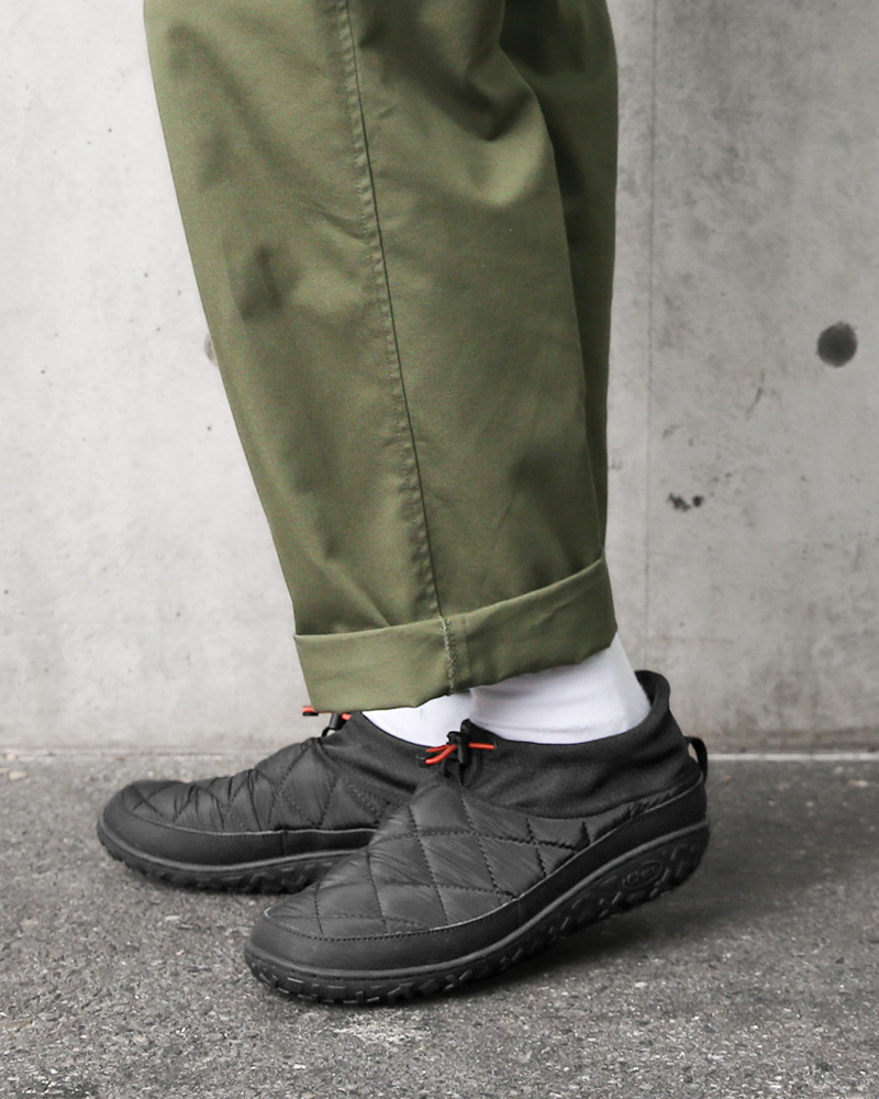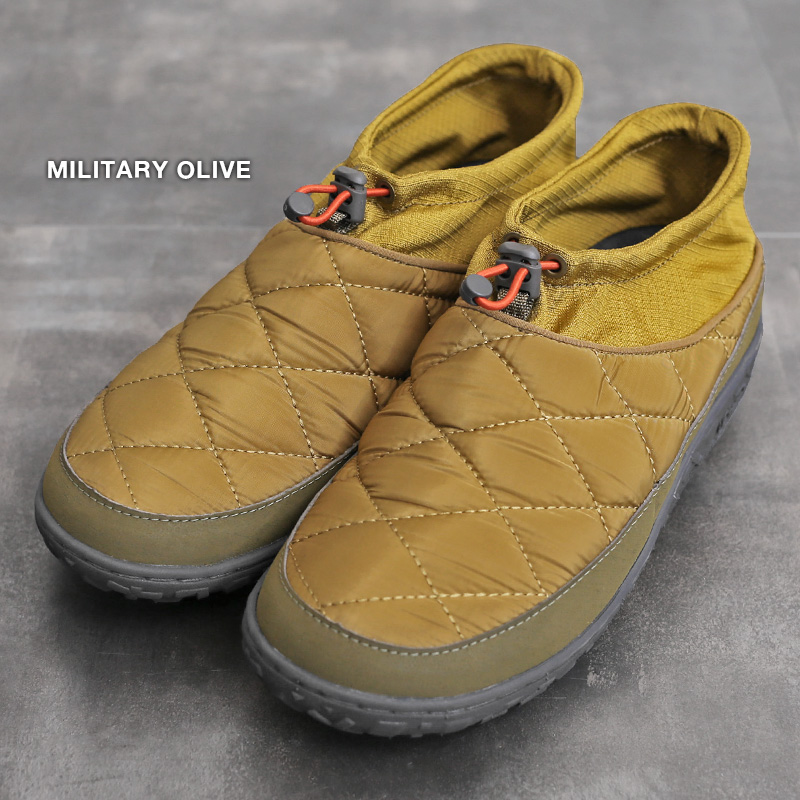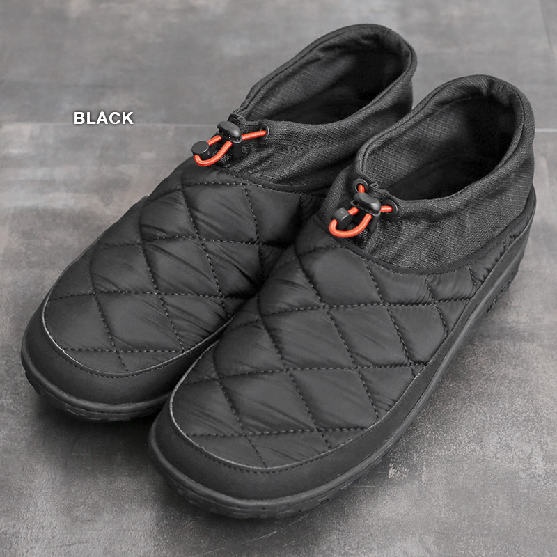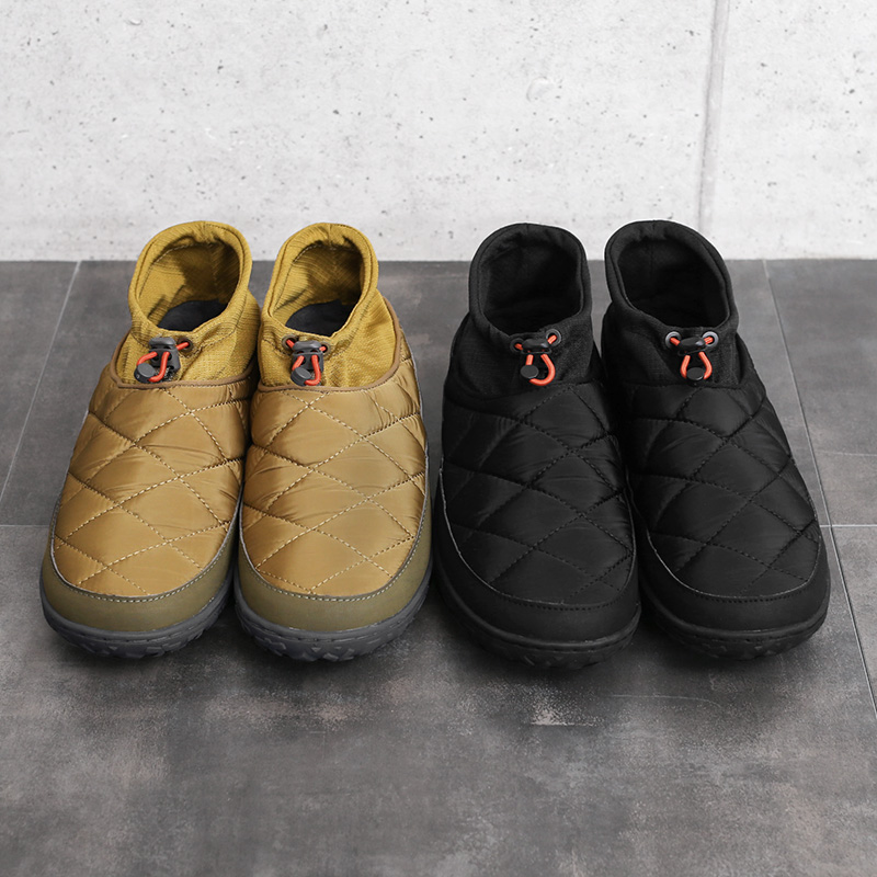 耐久性のあるカスタムメイドのキルティングが目を引くだけでなく、 軽量で持ち運びにも優れているので、テントシューズとしてや、旅行、日常までさまざまなシーンで活用できます。