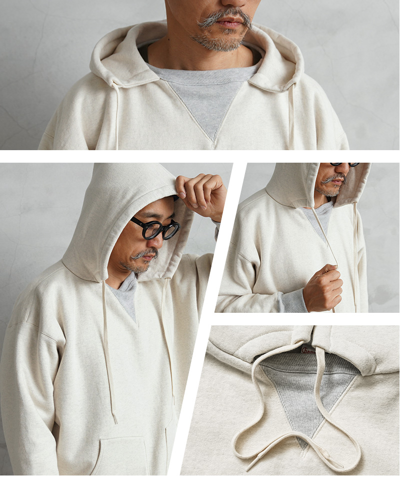 TRUE TO ARCHIVESから、1950年代半ばにアスレチックラインとして販売されたアイテムの復刻版で、裏起毛素材を二重構造にしてかさを上げ、寒い季節にも対応する保温性を持たせたダブルシックネスプル オーバーアフターフーデッドスウェットシャツの登場です。「TRUE TO ARCHIVES」はChampionの100年を超える歴史のなかで培ってきた素材、デザインなど「Archives」の資産を掘り起こし、忠実に再現し完全復刻したスペシャルライン。当時の生地を忠実に再現したコットン100%の生地を使用。旧式のシンカー編み機で編み立てた独特のボリューム感と風合いが特長です。