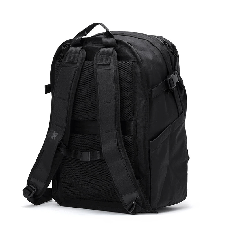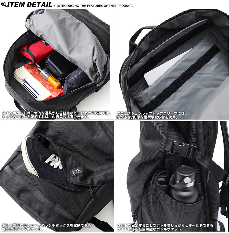 CHROMEから大容量でありながら、中の荷物を徹底的に守るタフな設計のバックパックが登場。内部にPCを水と衝撃の両方から守る「デュアルプロテクトラップトップスリーブ」を内蔵しており、取り外して使用することも可能。 水を通さない素材とクッション材を組み合わせ、15インチまでのPCを雨と衝撃の両方からガードします。スリーブだけを取り出して、バッグインバッグのように単体使用もできます。外装にはバイアス状の模様が特徴で破れに強い強度を持つCHROMEオリジナルの素材を採用。38Lの大容量に加え、トップのベルトを調節することで内容量をさらに拡張でき、ボトム部分にはシューズやランチボックスを収納できる独立したジップポケットを備えています。