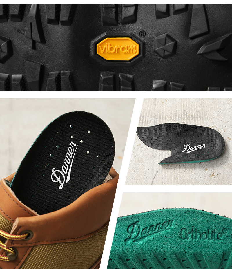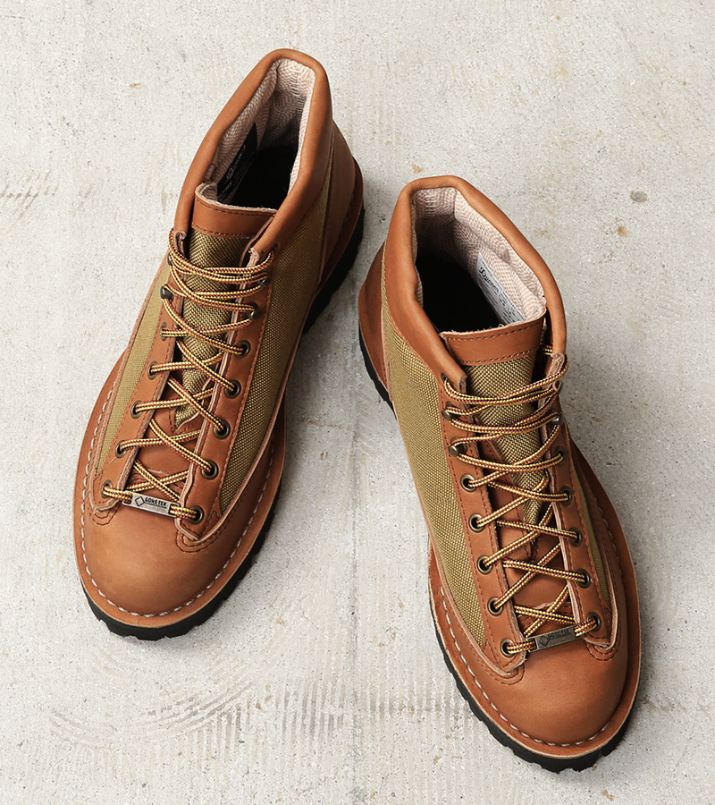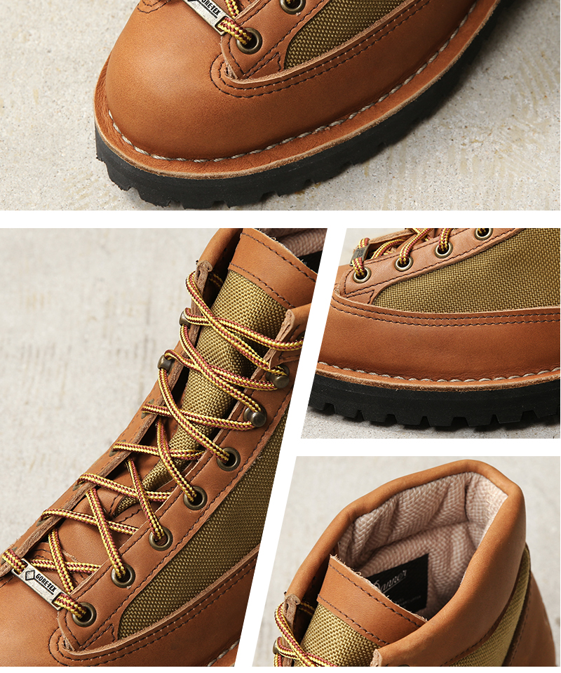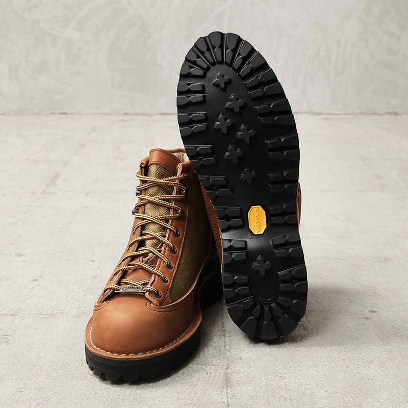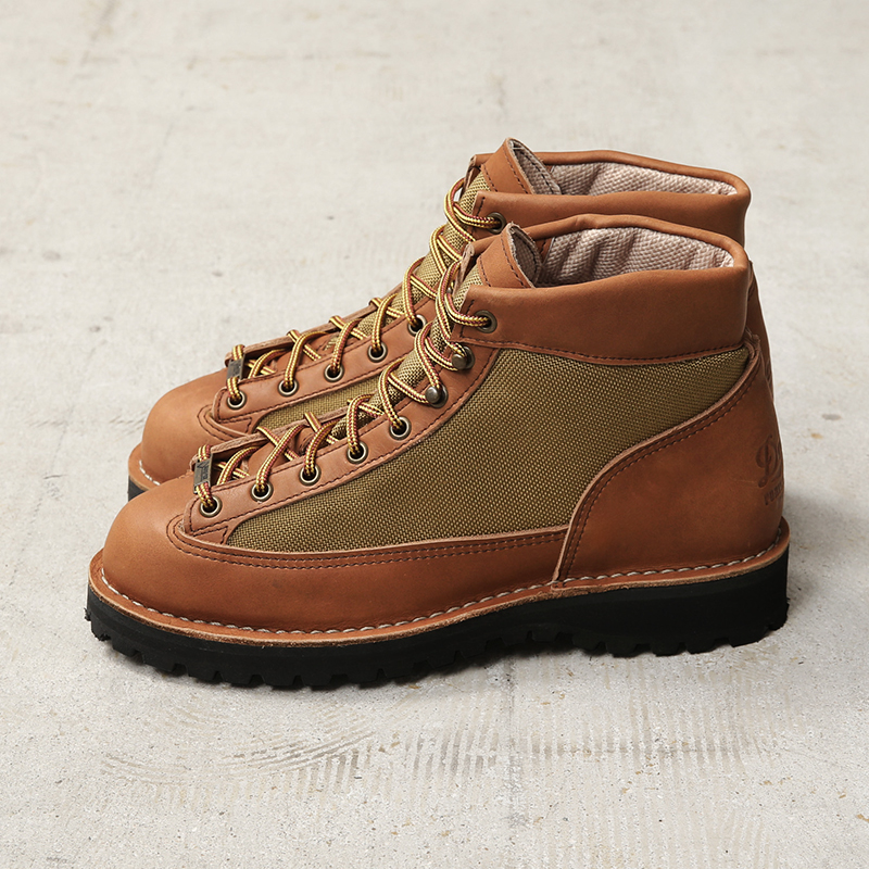 DANNERを代表するアイコン的な名作『ダナーライト』の、40年以上ダナーに勤務するパタンナーによって、1980年代のオリジナルモデルのディテールを忠実に再現した復刻モデルが登場しました。1979年にゴアテックス社との共同開発によって、世界で初めてGORE-TEXを靴に採用したトレッキングシューズで、 翌1980年に一般にリリースされ、DANNERを語るうえで欠かす事の出来ない代名詞的なブーツです。T-BACKと呼ばれるT字型のバックステイパターン、アイステイに施された三角形のステッチワーク、シュータン部分の使用は現行のDANNER LIGHTとは異なりレザーとナイロンのコンビになっているなど、マイナーチェンジの過程で省略されたディテールを再現した1足。 MADE IN USA