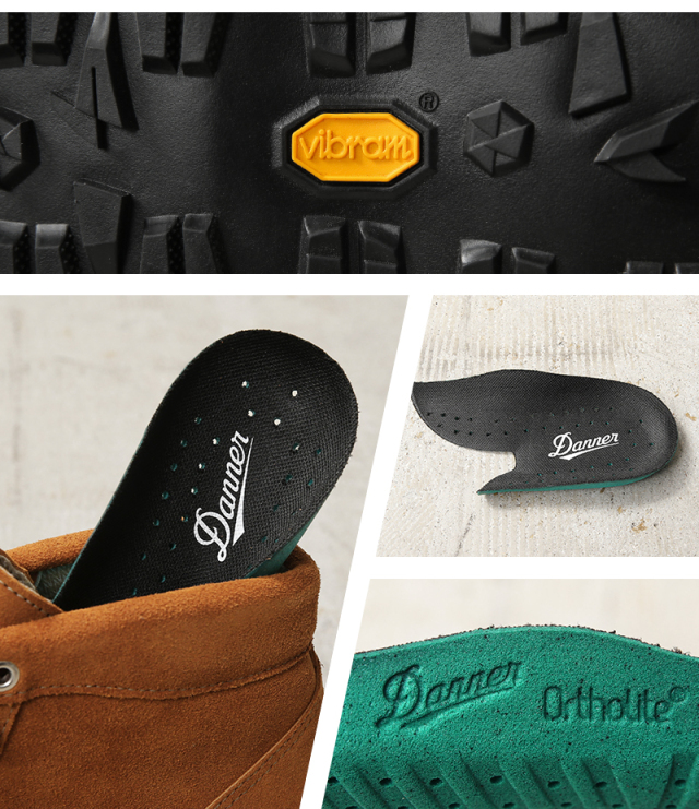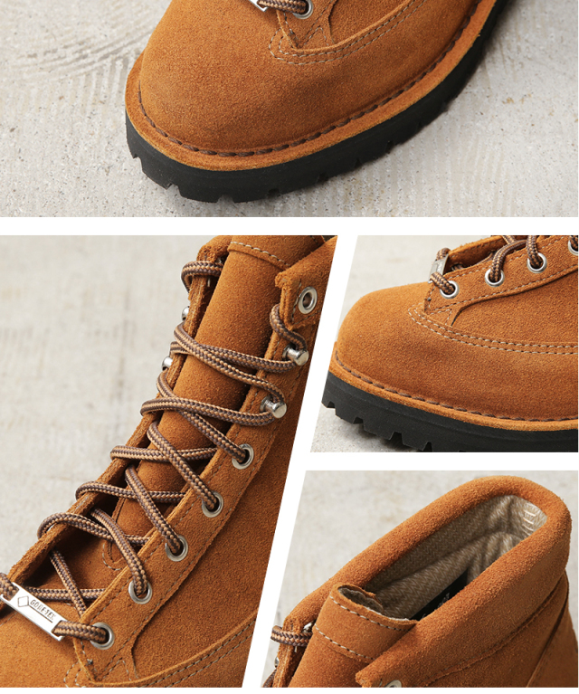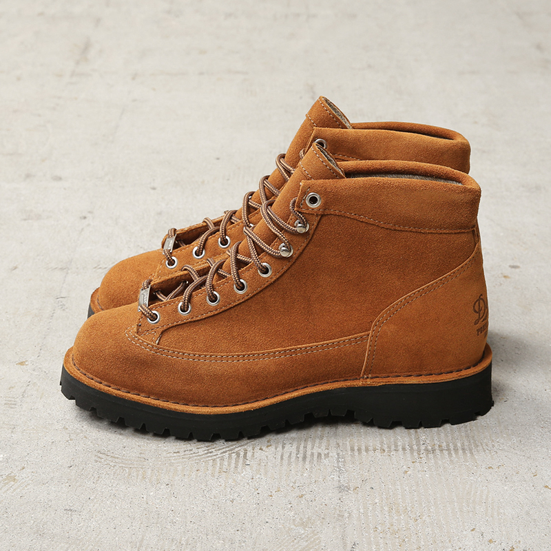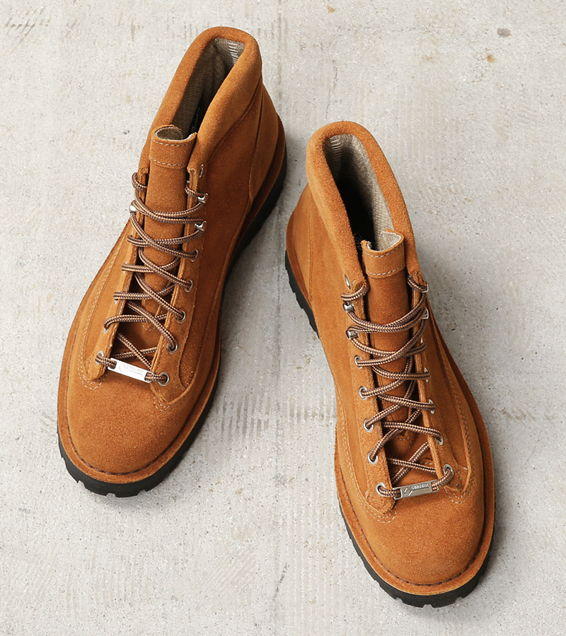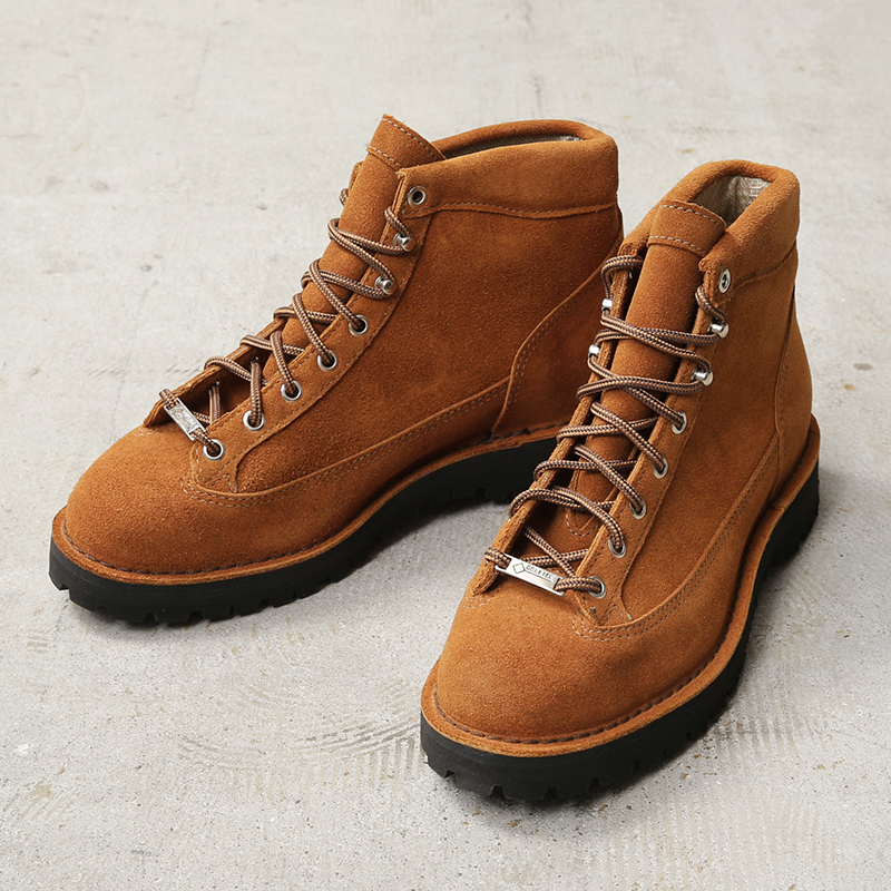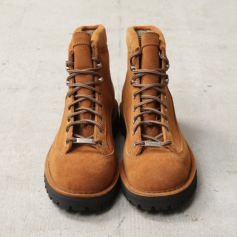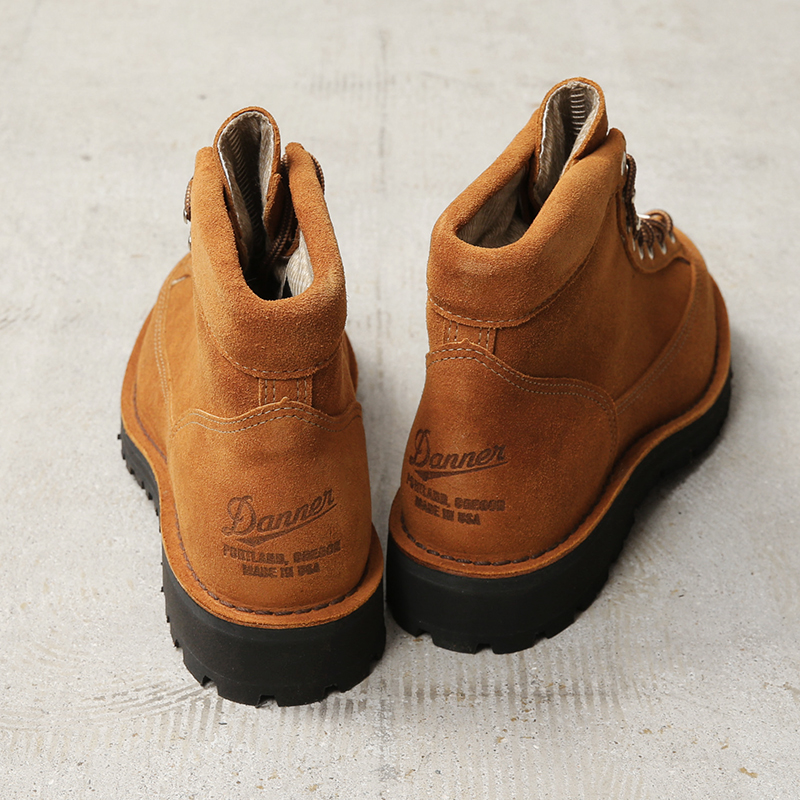 DANNERを代表するアイコン的な名作『ダナーライト』の、40年以上ダナーに勤務するパタンナーによって、1980年代のオリジナルモデルのディテールを忠実に再現した復刻モデルが登場しました。1979年にゴアテックス社との共同開発によって、世界で初めてGORE-TEXを靴に採用したトレッキングシューズで、 翌1980年に一般にリリースされ、DANNERを語るうえで欠かす事の出来ない代名詞的なブーツです。T-BACKと呼ばれるT字型のバックステイパターン、アイステイに施された三角形のステッチワークなど、マイナーチェンジの過程で省略されたディテールを再現した1足。アッパー部分は毛足の短い上質なジョーンズキャニオン(スエード)を採用。 MADE IN USA