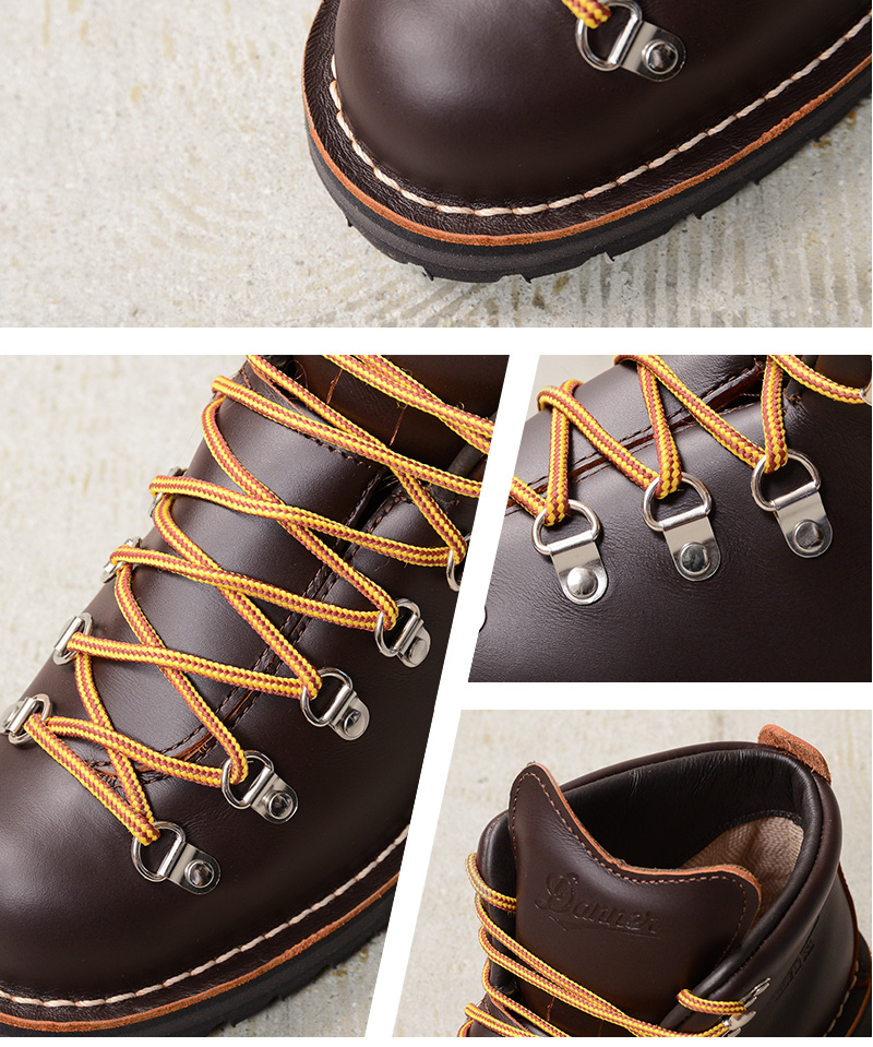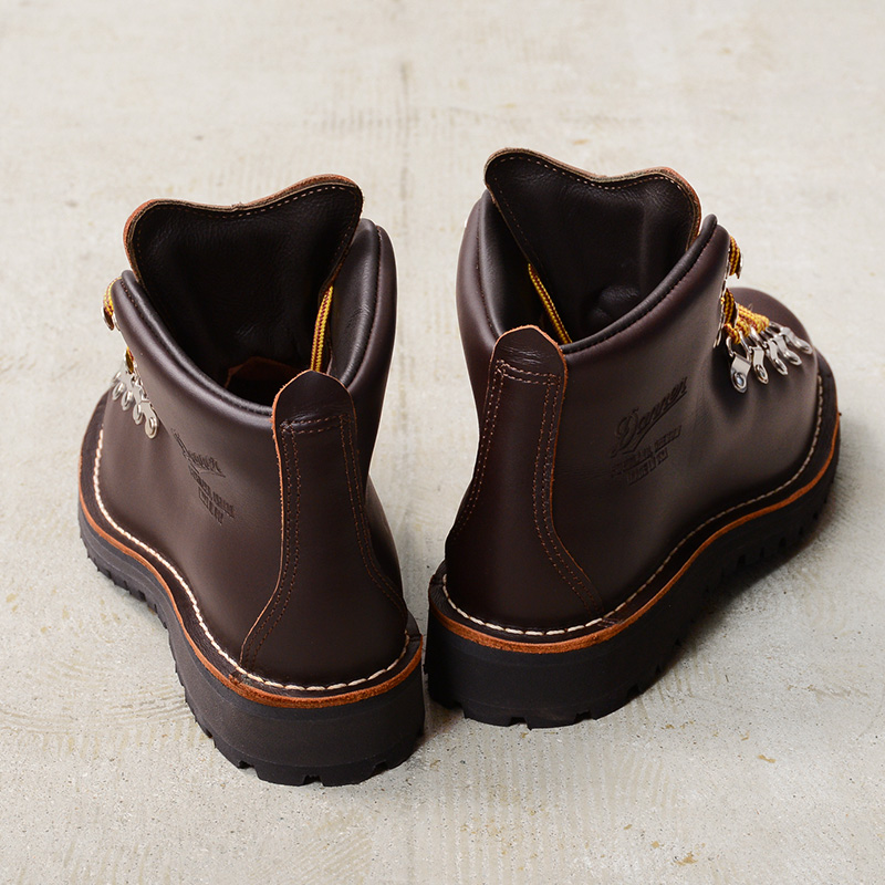 DANNER定番のオールレザーのマウンテンブーツ『マウンテンライト』が登場しました。1982年に発売されて以来、高い防水性と耐久性で多くのファンから支持され続けている名作。 1979年発売の『Danner Light』同様、GORE-TEXを採用したトレッキングシューズで、 昔ながらのマウンテンブーツを体現するかのようなデザインで、DANNER名作ブーツの一つです。機能性はもちろんのこと、レザーの艶感が程よく、アウトドア感がありながらも都会的でスマート。ワークシューズ、アウトドアシューズとしてはもちろん街履きにもボーダレスに活躍します。本格派のアウトドアブーツでありながら、街でも映える大人の定番ブーツです。