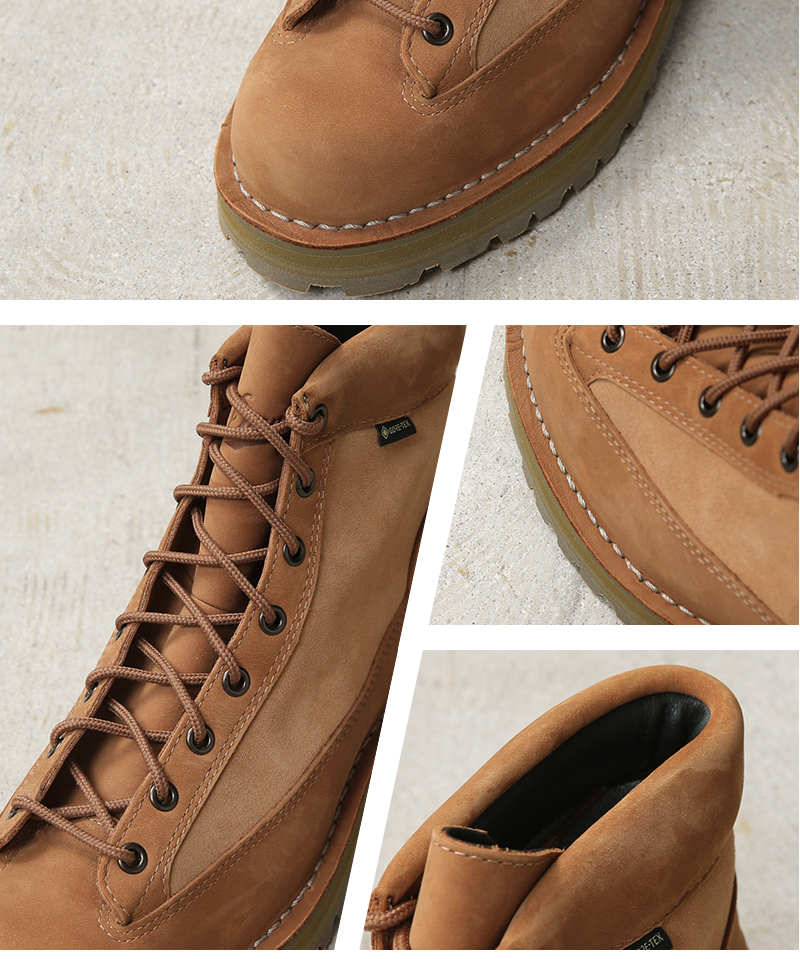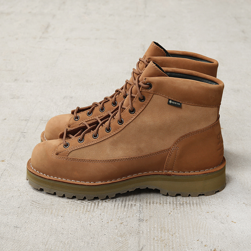 Dannerが展開する防水・透湿性に優れたアウトドアシューズ「DANNER FIELD」を、現代のライフスタイルにマッチするように昇華したアップデートモデルが登場しました。“温故知新”をテーマに掲げ、モデル名に冠した “R” には、[Reborn(生まれ変わる)]、[Revolution(革命)]、[Revival(復刻/復活)]など複数の意味が込められている今シリーズ。メインアッパーに耐久性が高くマットで高級感のあるヌバック、サイドパネルにスエード、ライニングには撥水性に優れ、シューズ内の湿気は外に逃がす防水透湿性能を備えGORE-TEX素材を採用。 ソールユニットには特注カラーを組み合わせ、クラシックな表情にモダンなアクセントを加えています。 DANNERの名作「ダナーライト」を基にしたデザインで、伝統と新しさが融合したモダンなスタイルが印象的です。