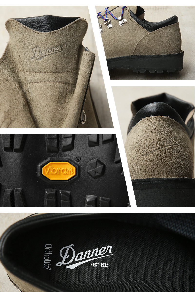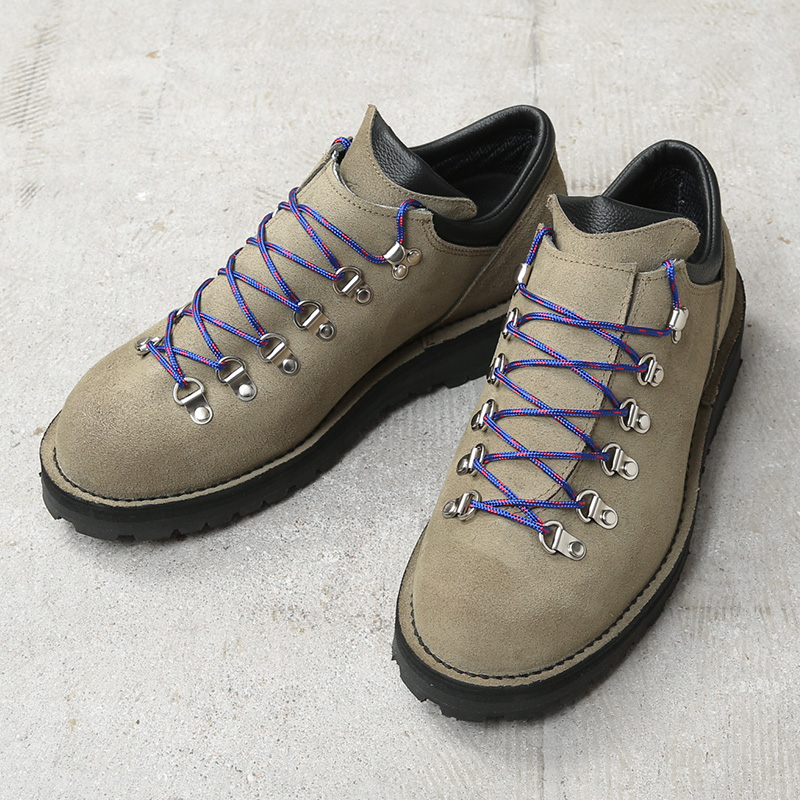Dannerの不朽の名作トレッキングブーツ「MOUNTAIN LIGHT(マウンテンライト)」をベースにしたローカットモデルが登場。アッパーには上品で落ちつきのある、防水スエードを採用。DANNERらしいアウトドアテイストを演出しつつ、シンプルな佇まいは都会的な印象も与えます。