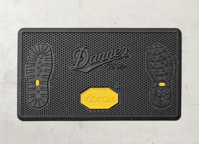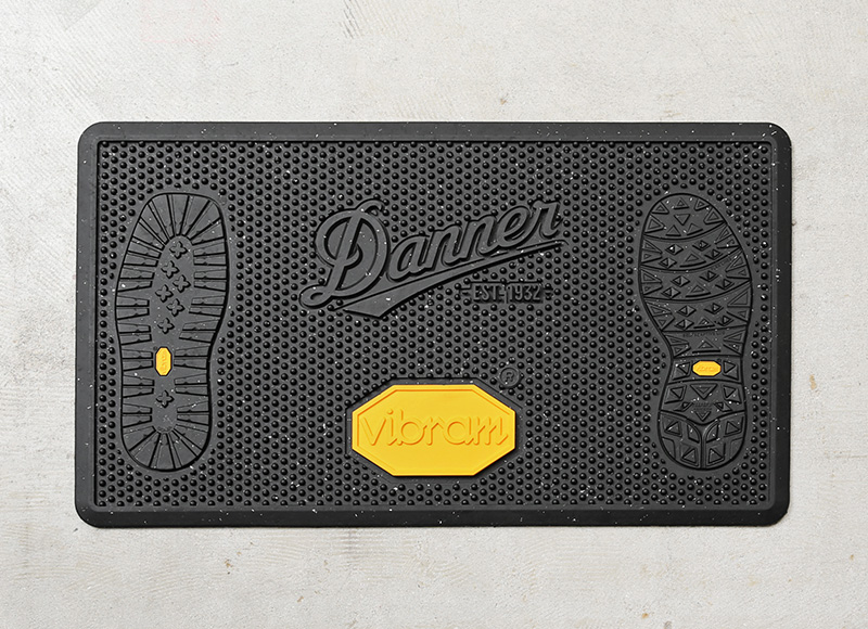 VIBRAMの先進的なラバーテクノロジーとDANNERのデザインが融合した、特別なラバーマットが登場。アウトドアシーンをはじめ、過酷な環境でも優れたパフォーマンスを発揮するソールの開発で名高いVIBRAM社との共同開発により誕生した、DANNER別注のラバーマットです。中央には、両ブランドの象徴であるロゴが堂々と並び、両脇にはDANNERを象徴するクレッターソールとFUGAソールが配されたデザイン。 アウトドアや靴好きに刺さる硬派なデザインに、ラバー素材ならではの優れたグリップ力と耐久性で、玄関やガレージを安全でスタイリッシュに演出します。