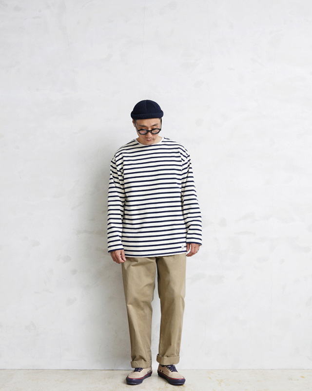 | 商品説明 | FIDELITY フィデリティ L/S バスクボーダー ボートネックTシャツ のご紹介です。 品名:BORDER L/S REGULAR 品番:TK-1775000 バスク地方で漁師や船乗りのワークウェアとして誕生したのでしっかりとした作りに、現代に馴染むタイムレスなデザインが魅力のバスクボーダーシャツがFIDELITYから登場しました。 生地には24番手2本使いのヘビーウエイト天竺編みを採用。ラフな風合いにしっかりとした肉感でありながら、上品な印象に仕上がっています。耐久性にも優れており、着込んでいくほどに肌に馴染んでいきます。 首元は着脱しやすいようデザインされた浅い船底の形のようなボートネック。開きすぎないサイズで設計しているので、クセがなく落ち着いた雰囲気。全体的にほどよくゆるめでトレンド感のあるシルエットは、ユニセックススタイルにもオススメです。 フレンチカジュアルを代表するボーダーに、素材やシルエットから感じるクラシカルな雰囲気は一枚でコーディネートのメインになる万能アイテムです。 |