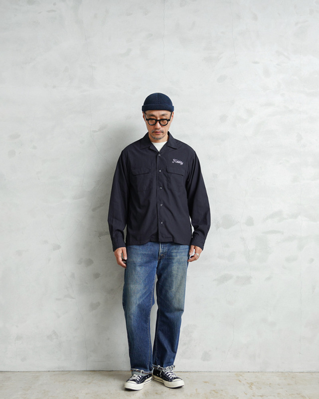 FIDELITYより、肌触りの良く汎用性の高いロングスリーブシャツが入荷しました。生地はソフトな肌触りの再生繊維、テンセルといわれる木材パルプを特殊な溶剤で溶かして作られる地球にやさしいエコロジカル素材です。 ソフトな風合いと程よい光沢感で、吸放湿性もあり、高級感もありながら機能性もあるのが特徴です。また適度なハリとコシがあり、コーディネートを上品に演出してくれます。1950年代のヴィンテージシャツを彷彿させるデザイン。シルエットはややゆったりめの身幅と程よい丈感をとったボックスシルエット。 また両胸のフラップポケットと左胸に入った刺繍がよいアクセントになっています。
