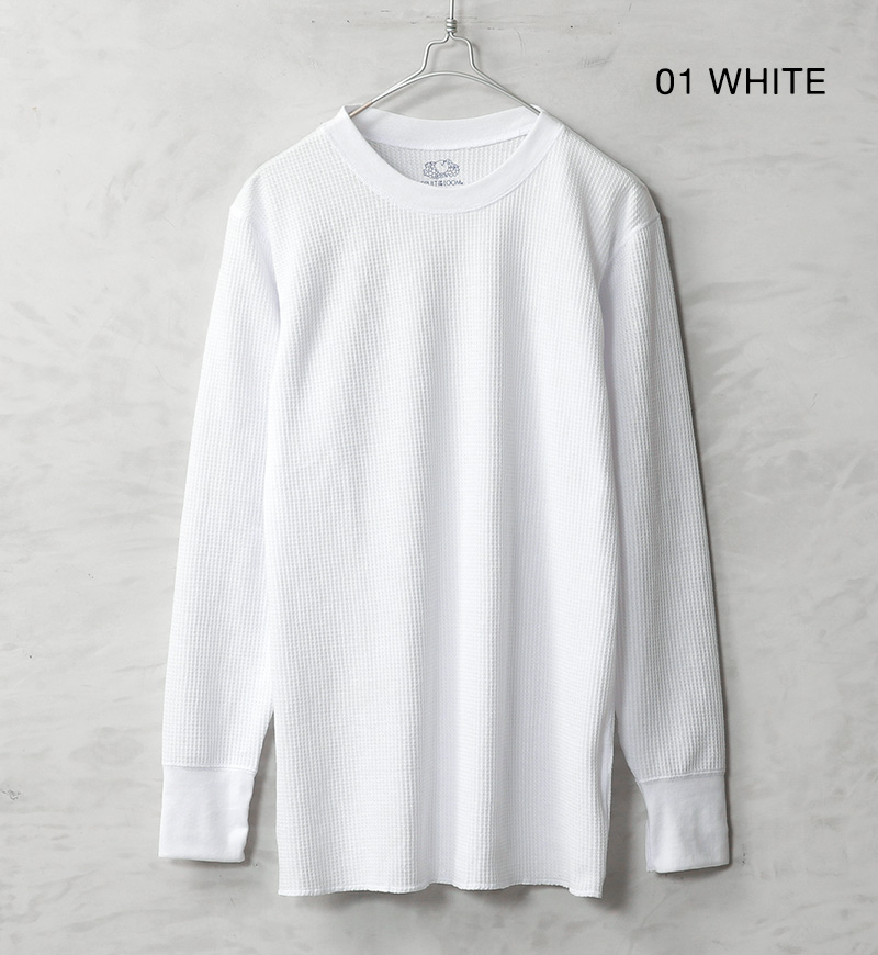 アメリカの老舗アパレルFRUIT OF THE LOOMから、肌心地の良いワッフル生地が特徴のL/S Tシャツが登場しました。 生地は肌触りの良いコットンとポリエステルの混紡素材を使用。サラッと肌触りのよい吸湿性のあるコットンと速乾性のあるポリエステルでデイリーに使いやすいバランスの取れた生地感となっています。