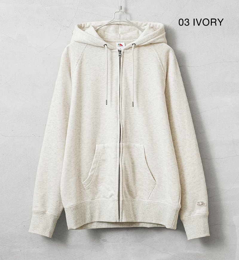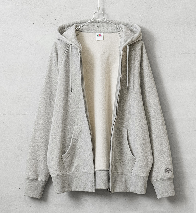 アメリカの老舗アパレルFRUIT OF THE LOOMから、ベーシックなカラーが特徴的なスウェットジップフーディーが登場しました。生地は肌触りの良いコットンを使用。タフで耐久性に優れながらも、着るたびに身体に馴染んでいく風合いが魅力です。程よい厚みがありながらも重たすぎず、デイリーに使いやすいバランスの取れた生地感となっています。