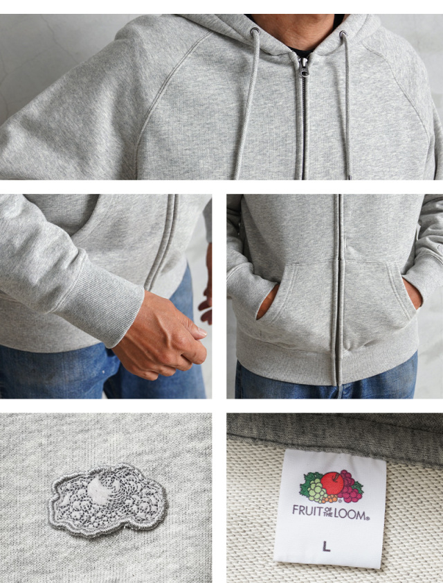| 商品説明 | FRUIT OF THE LOOM ベーシック スウェット ジップ フーディーのご紹介です。 品番:81350000 アメリカの老舗アパレルFRUIT OF THE LOOMから、ベーシックなカラーが特徴的なスウェットジップフーディーが登場しました。 生地は肌触りの良いコットンを使用。タフで耐久性に優れながらも、着るたびに身体に馴染んでいく風合いが魅力です。程よい厚みがありながらも重たすぎず、デイリーに使いやすいバランスの取れた生地感となっています。 裏地にはパイル(裏毛)仕様を採用。肌にやさしく触れる柔らかなループ状の生地は、吸湿性・通気性に優れており、汗ばむ季節でも快適な着心地をキープ。春や秋などの季節の変わり目はもちろん、インナーとの組み合わせ次第でロングシーズン活躍してくれる万能アイテムです。 身幅にゆとりのある、ラグランスリーブ仕様で動きやすく快適。ヴィンテージウェアなどによくみられる、TALONジップを採用しており、雰囲気よく仕上がっています。 フロントには手がすっぽりと入る大きめのポケットを配置。左袖口にはFRUIT OF THE LOOMのブランドパッチがあしらわれ、シンプルな中にも程よいアクセントを加えています。全体的に無駄を削ぎ落としたミニマルなデザインは、カジュアルからきれいめまで幅広いコーディネートに対応します。 ベーシックなデザインと着脱が容易で実用性のあるジップフーディーはデイリー使いから、ワンマイルウェアまで、使えるオススメアイテムです。 |
