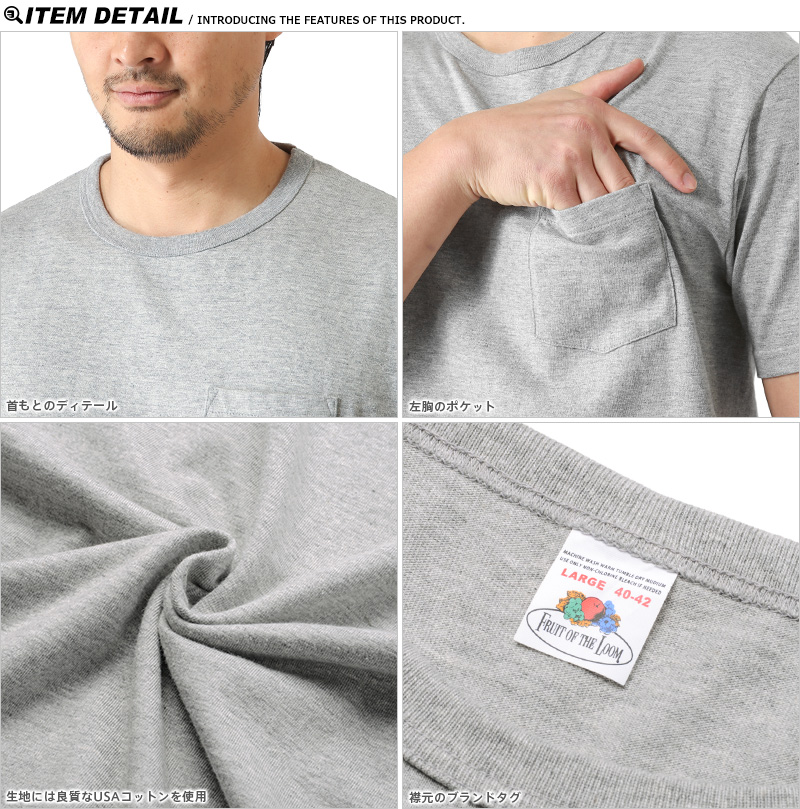 | 商品名 | FRUIT OF THE LOOM フルーツオブザルーム 922-005 S/S クルーネック ポケットTシャツ |