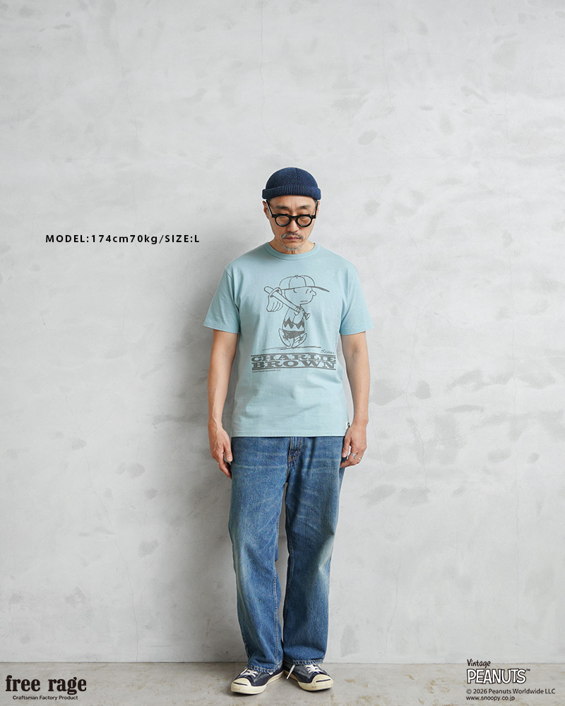 | 商品名 | PEANUTS×free rage フリーレイジ FRP004 CharlieBrown リサイクルコットン半袖Tシャツ |