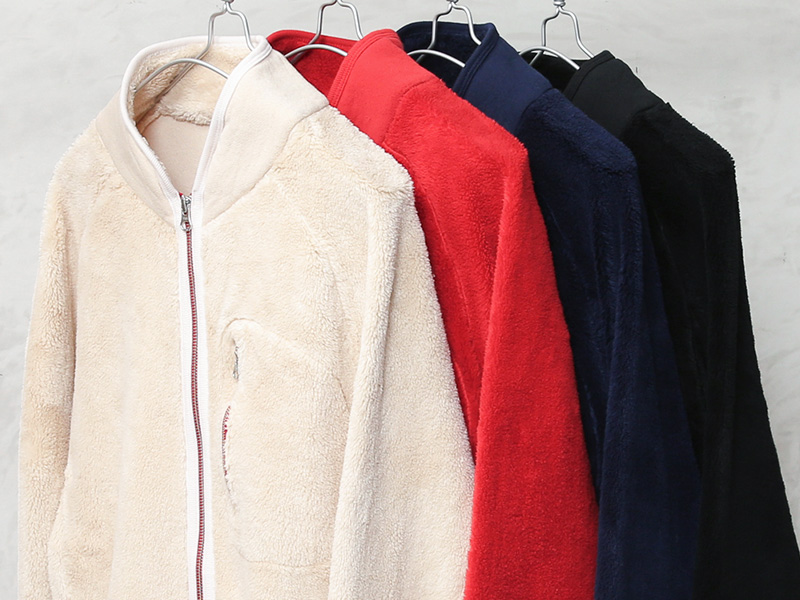 製品染めに対応したオリジナルフリースファブリック ”コットンボア”を使用したフリーダムジャケットが登場しました。素材にはUSAコットンを限界まで厚く織り上げ、表面をシャギー状に仕上げたGood On独自の生地を採用。保温性はもちろん、軽量なのも特徴。またコットンならではの肌触りの良さと風合いで快適に着用可能です。裏地にはスウェットのような質感の生地を使用しており、柔らかく優しい着心地で静電気が起こり辛いのも嬉しいポイントです。