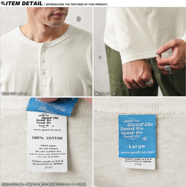 | 商品名 | Good On グッドオン GOLT-1601 L/S ヘンリーネックTシャツ 日本製 |
