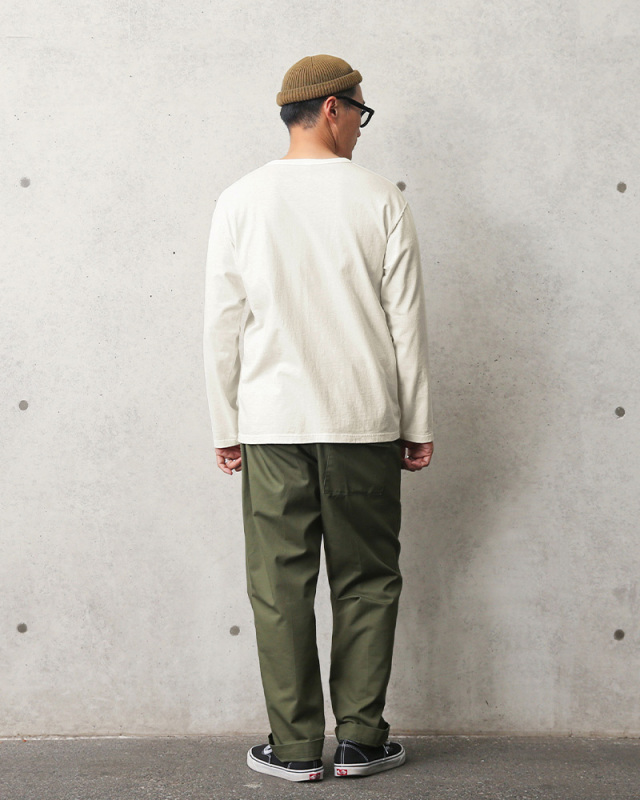 | 商品説明 | Good On グッドオン L/S ヘンリーネックTシャツ 日本製 のご紹介です。 品番:GOLT-1601 肌に優しく強い高品質のコットンを使用したヘンリーネックTシャツです。 高品質のコットンを使用しているため肌さわり抜群。縫製も強度があり、洗濯を繰り返しても傷みにくく長持ちします。 サイドに縫い目のない丸胴仕上げで縫い代が肌に当たらずストレスフリーでご着用いただけます。 前たてとネックリブの幅を細くし、ポイントである首周りをシンプルに仕上げました。落ち着いたスマートな印象は、さまざまなコーデに取り入れやすいデザインになっております。 Pigment Dye(顔料染め)カラーは、着用回数を重ねていくごとに経年変化による「色落ち感・当たり感」が楽しめます。豊富なカラーバリエーションとシンプルなデザインだからこそ、何枚でも欲しくなるオススメの一枚です。 素材からパターン、染めまで、全てにGood Onのこだわりを思う存分感じられるアイテムです。 Fabric Made In USA Assembled In Japan |