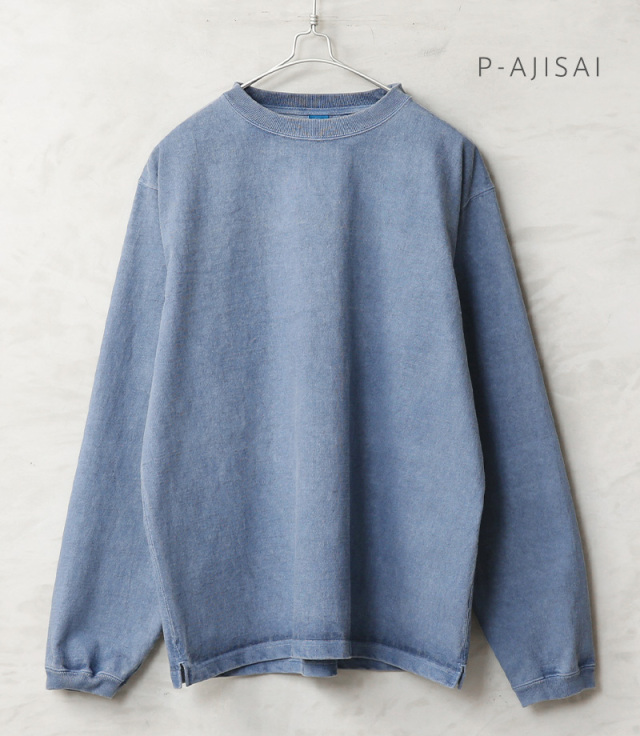 ※染め商品の特性上、一点一点染め上がりのお色やサイズに若干の誤差がございますので予めご了承ください。また、独特のユーズド感のある表情、多少のゆがみや擦れ、縫い目部分のしわ、編み地の筋やムラなどは製品の特徴です。素材の持つ不均一感やラフ感をお楽しみください。