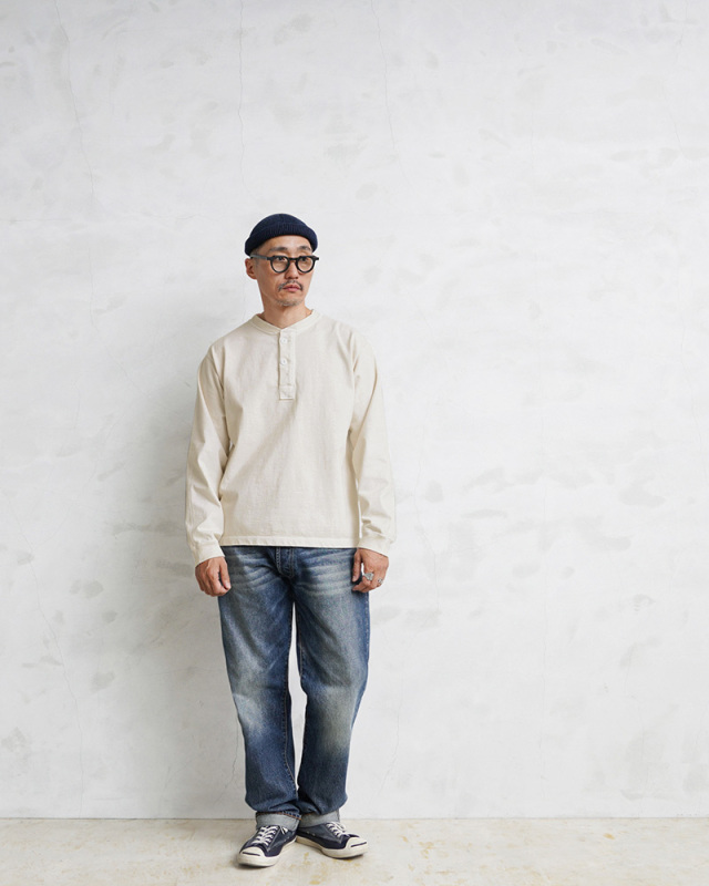 | 商品説明 | Good On グッドオン L/S ヘビージャージー ヘンリーTシャツ 日本製 のご紹介です。 品番:GOLT-2209 着心地の良いヘビーオンスジャージー素材を使用したヘンリーネックTシャツです。 生地には薄手のスウェットのように存在感のある9オンスのジャージー素材を使用。肌に触れる柔らかなUSAコットンが気持ち良い一着です。その厚みを支える丈夫な縫製なので、安心して洗濯を繰り返すことができます。 元イングランド代表のサッカー選手「デビッド・ベッカム」が愛用し、主に80年代に米軍で支給されていた2ボタンヘンリーネックアンダーシャツのディテールを忠実にヘビーオンスジャージーに落とし込みました。長く気軽に着こなせるようにフラットでタフな縫製と、計算されたパターンを採用することによって着用時のストレスを軽減しました。 Pigment Dye(顔料染め)カラーは、着用回数を重ねていくごとに経年変化による他にはない「色落ち感・当たり感」が楽しめます。ヘビーオンスの生地は定番の生地以上に染色の濃淡が際立つので、より楽しむことができます。シンプルなデザインだからこそ、何枚でも欲しくなるオススメの一枚です。 素材からパターン、染めまで、全てにGood Onのこだわりを思う存分感じられるアイテムです。 Fabric Made In USA Assembled In Japan |