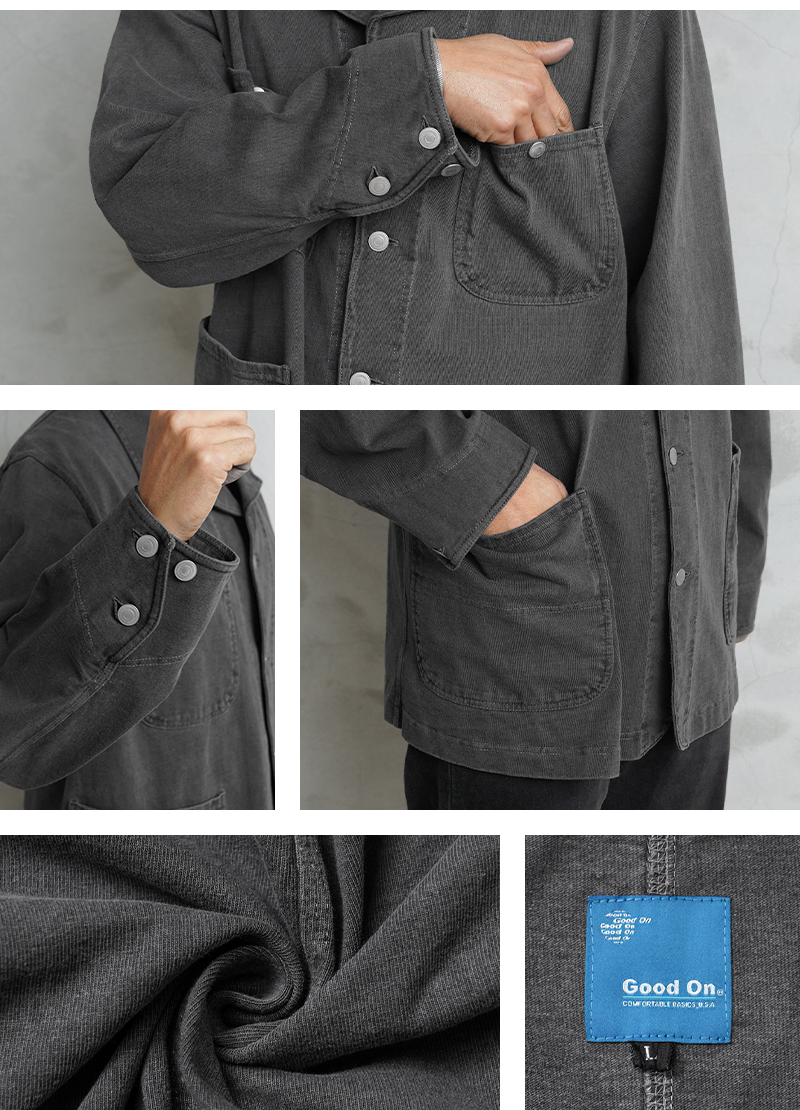 | 商品説明 | Good On グッドオン ヘビージャージー カバーオール 日本製 のご紹介です。 品番:GOLT-2401 ヴィンテージのカバーオールをモデルにした着心地の良いコットン素材のジャケットです。 生地にはさらりとした肌触りが気持ちいいUSAコットンを使用した、重量感のある9オンスのヘビージャージー。太い糸で高密度に編み込んだ厚手の生地はカットソーならではのカジュアルな印象を与え、染めによる風合い感を最大限に引き出すように仕立ています。お手入れもTシャツのように簡単!ご家庭での洗濯はもちろん可能で、ラフに扱ってもシワになりにくいので気軽に着回していただけます。 フロントにはワークテイストを感じさせる大きなパネルポケットを4つ配置。現代のファッションに合わせたゆったりとしたシルエットと、ヘビージャージーの生地感に映えるPigment Dyeの風合いが使い込んでいくほどに増していく楽しみの詰まった一着です。 Reactive Dye(反応染め)カラーは落ち着いた雰囲気のきれいな発色が特徴で、ベーシックかつシンプルな仕上がりで着回しやすく上品な印象です。 Pigment Dye(顔料染め)カラーは、生地の凹凸に独特の濃淡が加わることで唯一無二の風合いある表情に仕上がります。 素材からパターン、染めまで、全てにGood Onのこだわりを思う存分感じられるアイテムです。 Fabric Made in USA Assembled in Japan |