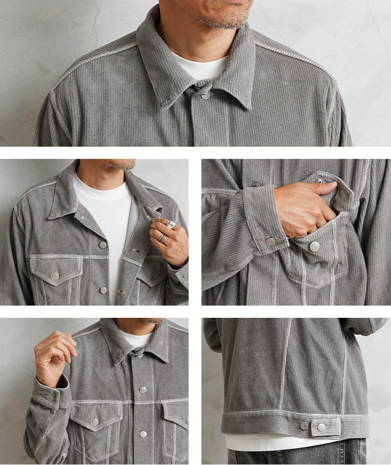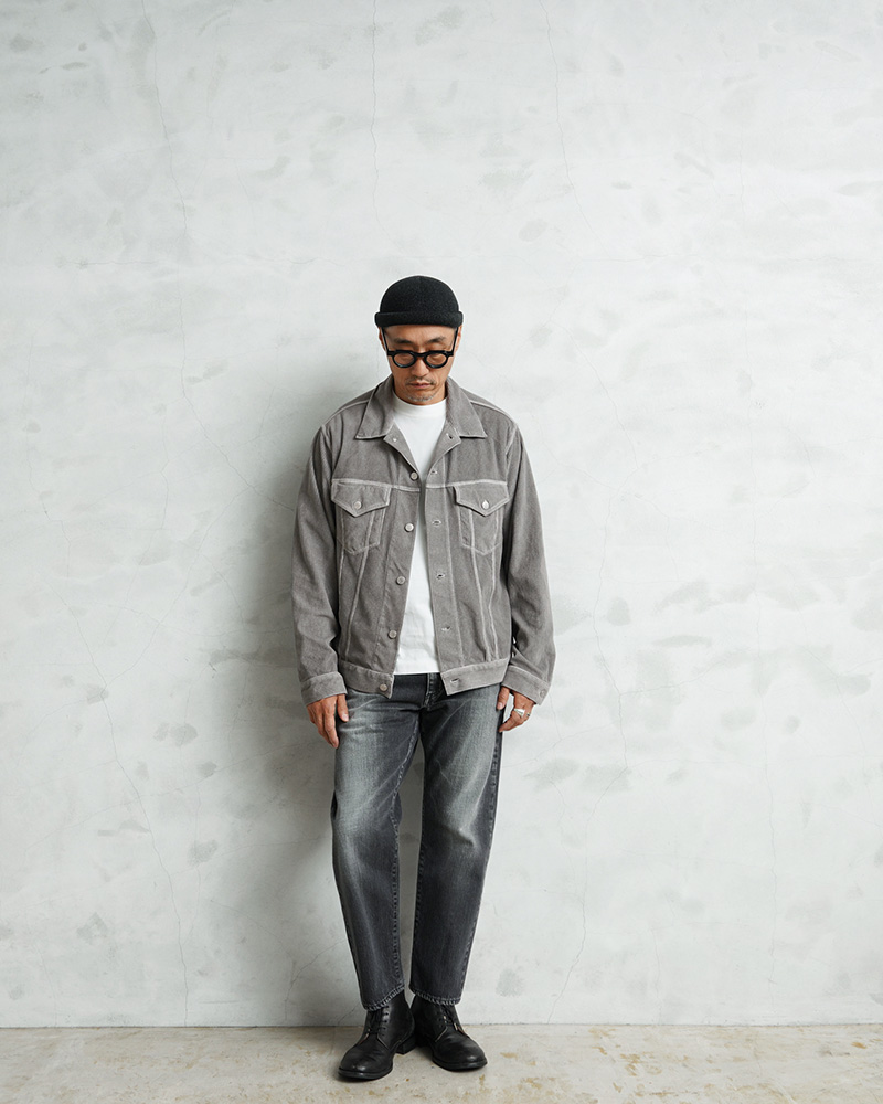 オーガニックコットンを使用したオリジナルファブリック“ニットコーデュロイ”の生地感を活かした、Gジャンが登場しました。国内の高いニッティング技術を駆使しクラシックな雰囲気の細畝のコーデュロイ生地を使用。柔らかく、軽量で伸縮性にも優れており、GジャンでありながらもTシャツのように心地よく、快適に着用可能です。