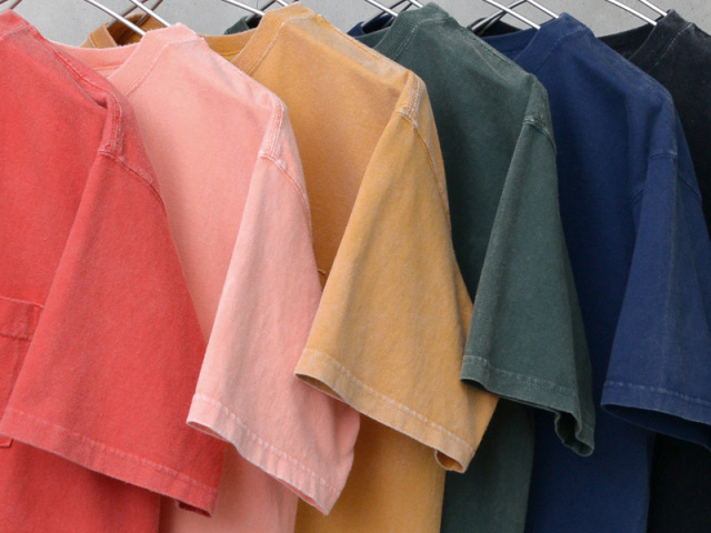 ※染め商品の特性上、一点一点染め上がりのお色やサイズに若干の誤差がございますので予めご了承ください。また、独特のユーズド感のある表情、多少のゆがみや擦れ、縫い目部分のしわ、編み地の筋やムラなどは製品の特徴です。素材の持つ不均一感やラフ感をお楽しみください。 |