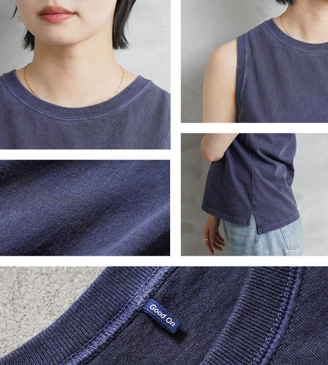 | 商品説明 | Good On グッドオン ファイントップ / タンクトップ レディース 日本製 のご紹介です。 品番:GOST-2202 Good Onの定番のTシャツ生地(USAコットン100%、5.5オンスジャージ)を使用した、リラックスして着られるノースリーブTシャツが登場。 しっかりとした生地感や安心して着られる丈夫さを気軽に楽しめます。 ウィメンズ仕様のスタンダードなシルエットで、Tシャツ感覚で様々なファッションに取り入れることが可能。涼しく快適な着心地で、インナー/アウター兼用で着回しやすく、生地の持つ柔らかな風合い感や製品染めによる味のある色合いが目を引きます。 裾の両サイドのスリットと、後ろ身頃をやや長めにとったロングテール仕様が控えめなアクセントとなり、一枚で着てもスタイリッシュに着こなすことができます。 Reactive Dye(反応染め)カラーは落ち着いた雰囲気のきれいな発色が特徴で、ベーシックかつシンプルな仕上がりで着回しやすく上品な印象です。 Pigment Dye(顔料染め)カラーは、生地の凹凸に独特の濃淡が加わることで唯一無二の風合いある表情に仕上がります。 タウンユースはもちろん、デイリーなリラックスウェア、アウトドアでのアクティブウェアとしても幅広いシーンで着回しの効くアイテムです。 Fabric Made In USA Assembled In Japan |