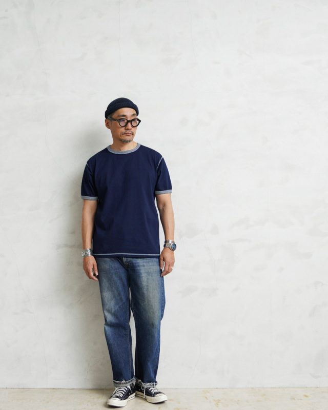 ※染め商品の特性上、一点一点染め上がりのお色やサイズに若干の誤差がございますので予めご了承ください。また、独特のユーズド感のある表情、多少のゆがみや擦れ、縫い目部分のしわ、編み地の筋やムラなどは製品の特徴です。素材の持つ不均一感やラフ感をお楽しみください。 |