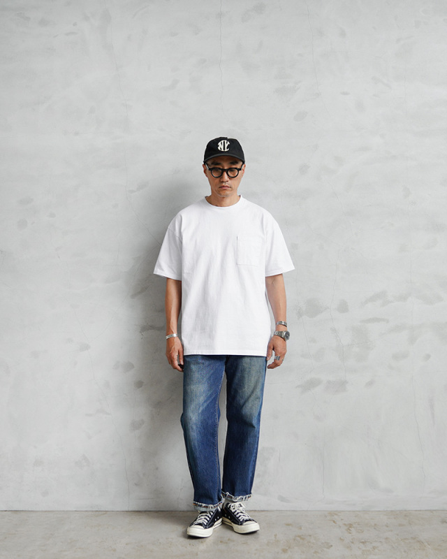 | 商品説明 | Goodwear グッドウェア USAコットン S/S ポケット Tシャツ BIG のご紹介です。 品番:2W7-3505 タフな生地感とシンプルなデザインで何度も着たくなるポケットTシャツのビッグサイズが登場。 USAコットン特有のドライな生地感と、7オンスの肉厚で縫製強度の高いタフなボディに洗いをかけてUSED感を演出。着用回数を重ねるごとに身体に馴染んでいき、より一層増していくヴィンテージライクな風合いが楽しみな一枚。 リラックス感のあるゆったりとしたシルエットで、襟はリブ仕様ですっきりとした印象。胸の四角ポケットが程よいアクセントになっています。 シーンを選ばない定番カラーや絶妙なニュアンスカラー、無地だからこそのオールシーズン活躍する着回し力。ワークウェアとしてや、ミリタリー、アメカジスタイルにもマッチする優秀アイテムです。 |