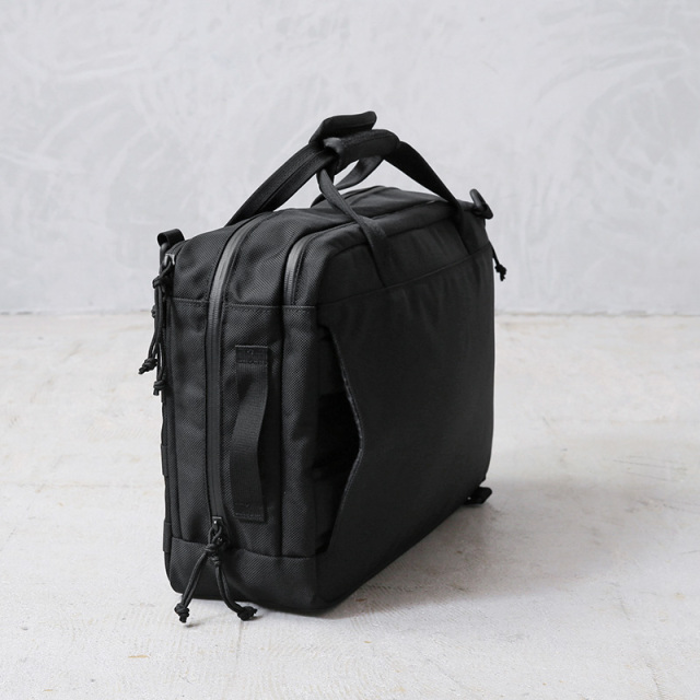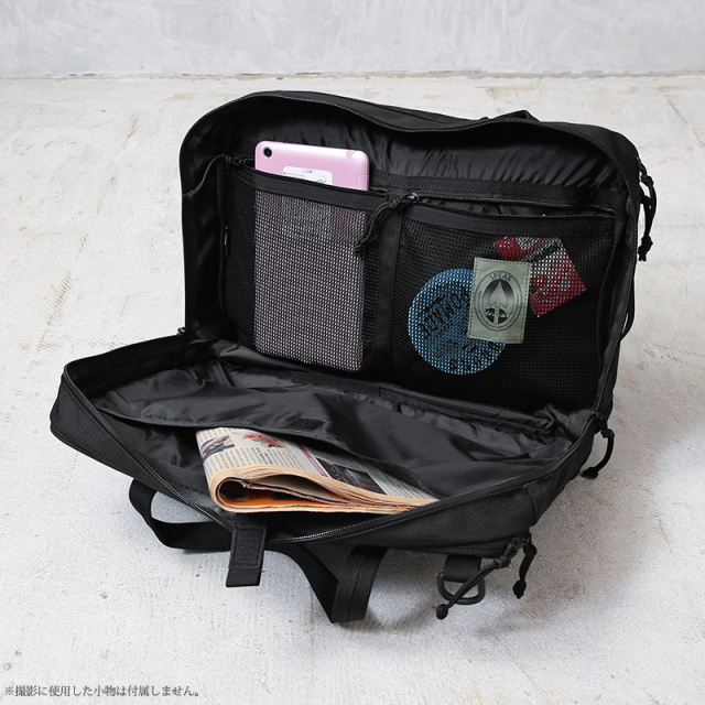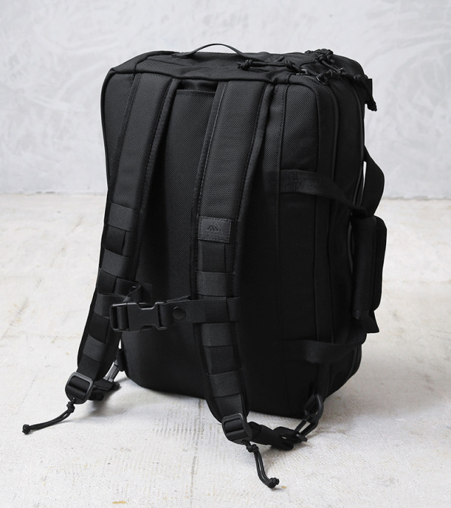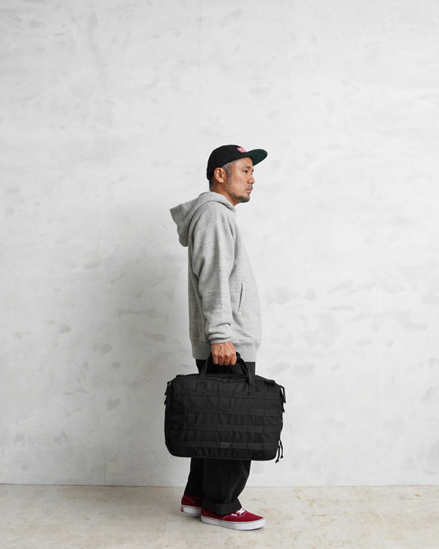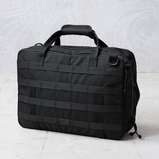 ミリタリーをコンセプトにしたSPEARシリーズのリファインモデル。止水ファスナーやアクセサリー類の外付け装着可能なモーリーシステム、耐久性など細部にいたるまで、ミルスペックの基準を満たした機能を搭載しています。摩擦強度、引裂き強度、引張り強度などに優れ、非常に耐久性の高い『1680Dコーデュラバリスティックナイロン』を採用。 取り外し可能なショルダーストラップのロゴパッチまで、オールブラックでより洗練され、幅広いシーンにマッチするデザインになっています。バックパック、ショルダー、ブリーフケースと3通りの仕様が可能で、ビジネスでも遊びでも、どんなシーンにも対応する3WAYパックです。メインコンパートメントは二つに大きく開き、荷物も一目瞭然。ビジネスや通学などにうれしい15インチのノートがすっぽり入るPCコンパーメントやオーガナイズ機能を備えています。