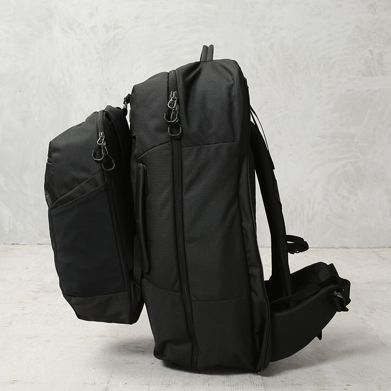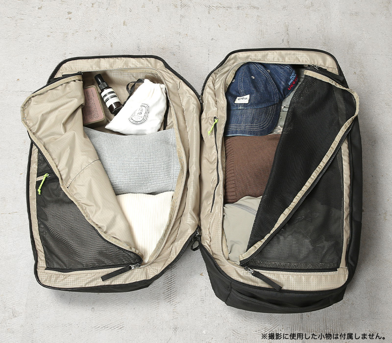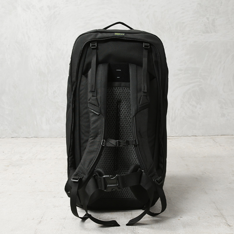 ちょっとしたお出かけから週末の小旅行などあらゆる用途に対応する、ボーダー・トラベルパックシリーズから取り外し可能な15Lデイパックと50Lの大型スプリットケースバックパックを備えた2in1システムのトラベルバックパックの登場です!素材にはリサイクル600Dポリエステルリップストップ生地を採用。耐久性はもちろん、しっかりとしたハリ感があり、型崩れしにくいのがポイント。またリップストップ織とフォーム構造の組み合わせで適度なしなやかさがあるのも特徴です。C0 DWR 処理と言われる、水滴を弾く性質を持たせており、軽い雨や水弾きには耐える程度の仕様となってます。
