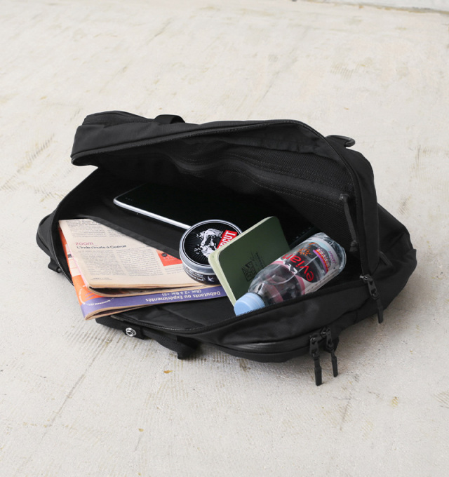 通勤や通学に必須な機能にこだわりつつも、無駄を省いたシンプルデザインでまとめたCOMMUTEシリーズから3WAYバッグの登場です。 素材にはCORDURA® Hollofil AIR™ Fabricを採用。摩擦、引き裂きに強いCORDURA®Fabricに、中空糸を使用することでより軽量化が実現され、さらに強度も兼ね備えた耐久性抜群の生地になっています。 ブリーフケースとして、またバックパックとしてカジュアルでもフォーマルでも対応できる仕様になっています。背面パネルに収納されたショルダーハーネスを引き出して装着するだけで、簡単にバックパックとしてご利用いただけます。 メインコンパートメント内には大きめのポケットと仕分けしやすいメッシュポケット、フロントには2箇所のジッパーポケットがついておりそれぞれ中に細かく仕切りが入っているので、仕事のアイテムを入れるのに最適です◎ またPC用コンパートメントは止水ジッパーによる防水と衝撃を和らげるパッドが備わっているので、安心してPCやタブレットを持ち運ぶことができます。 無駄を省いたシンプルなデザイン性の中に、機能的な収納力を持ち合わせたビジネスユースにも普段使いにもちょうどいいバッグです。 製品特徴 ・丈夫なYKK#10ジッパーを使用したメインコンパートメント ・つかみやすいナイロン製のジッパープル ・収納可能なバックパックスタイルのショルダーハーネス ・位置調節が可能なチェストストラップ ・PC専用コンパートメントにはタブレット用スリーブ付き ・ジッパー付きフロントポケットは内部にオーガナイザーとキーフォブ付き ・細かいアイテムの収納に便利なジッパー付きメッシュポケット ・環境に配慮した素材を使用 ・ポケットの数:9(外側3/内側6) |