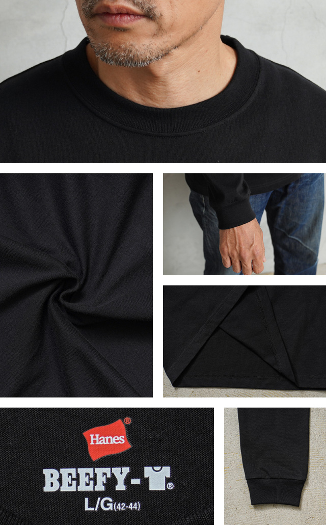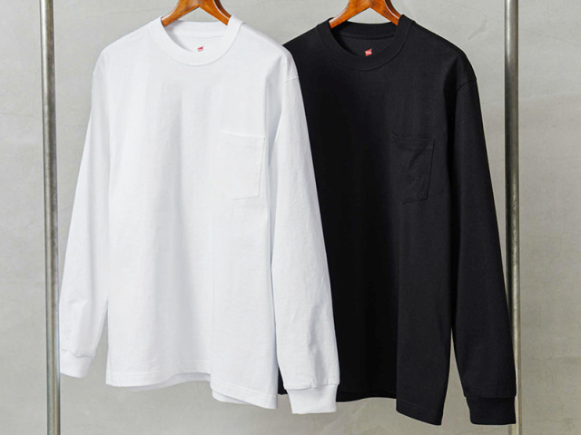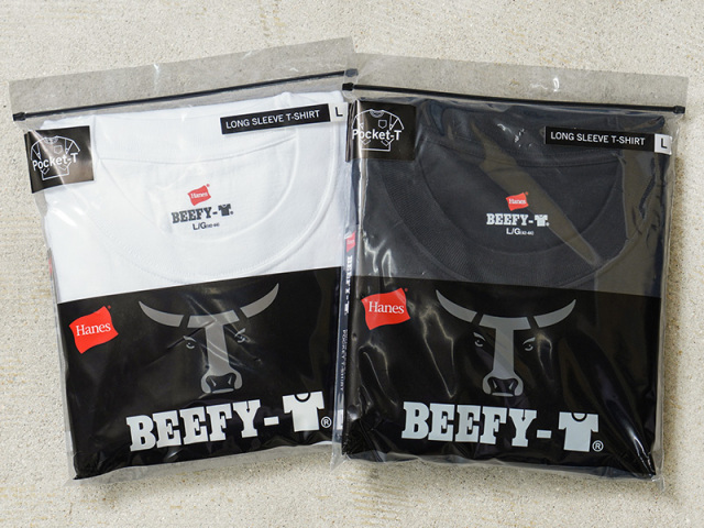 HanesからBEEFY(ビーフィー)のタフで着心地の良いロングスリーブポケットTシャツが登場です。1975年に誕生したBEEFY。当時はヒッピー文化の象徴でもあるプリントTシャツのボディとして開発されました。BEEFYは、その名の通り丈夫で洗えば洗うほど肌に馴染み独特の風合いが楽しめるアイテム。牛のようにタフでたくましいということで人気を集めています。ヘビーウェイト(肉厚)のコットン100%生地。タグは背中に違和感を与えないため熱転写でプリントしたタイプ、 そして脇に縫い目のない丸胴編みでストレスフリーな着心地。 タフな肉厚生地なので、洗いこんでも首回りが伸びにくく、耐久性も優れています。シルエットはアメリカンテイストを感じさせるクラシックなボックスシルエット。シンプルなデザインだからこそ、何枚も欲しくなるオススメの一枚です。