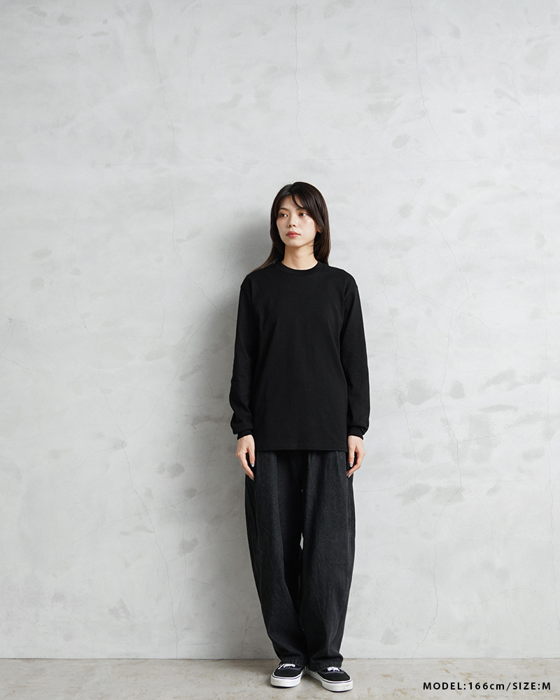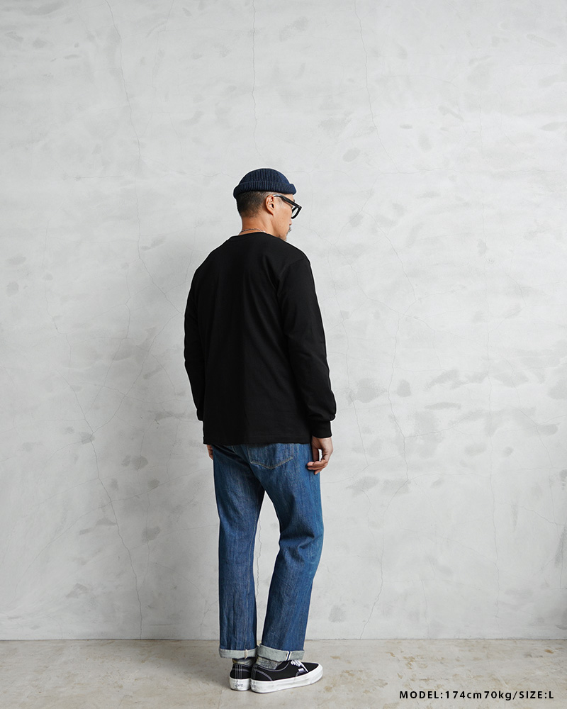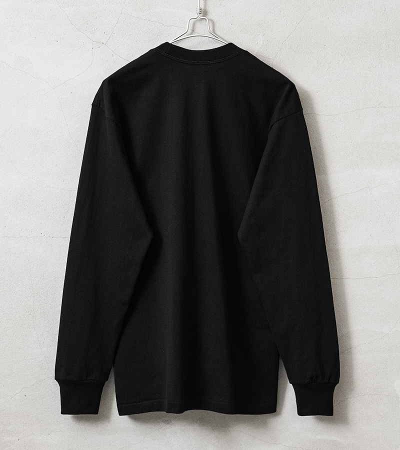 Hanesより、最高の白Tを追求して様々な要素を徹底的にこだわり抜いた、黒1色展開とする新パックTシャツからロングスリーブが登場。Hanesの独自製法で生み出したこだわりの“先染めBLACK”。先染めを採用することで、嵩高かつ柔らかな生地風合いと、毛羽立ちも少なく、繰り返し着用しても色あせない“BLACK”を実現しています。生地は3P-T(3枚入りパックTシャツ)赤ラベルで使用している糸を双糸にして編立てた、厚みと柔らかさを兼ね備えた 7.0 オンス。 首周りそしてフェイスラインを最もキレイに見せる最適な衿幅と後ろ下がりを付けることで首に快適に馴染むクルーネックは、Hanesのアーカイブをベースにアップデートした特徴的なラウンド形状になっています。