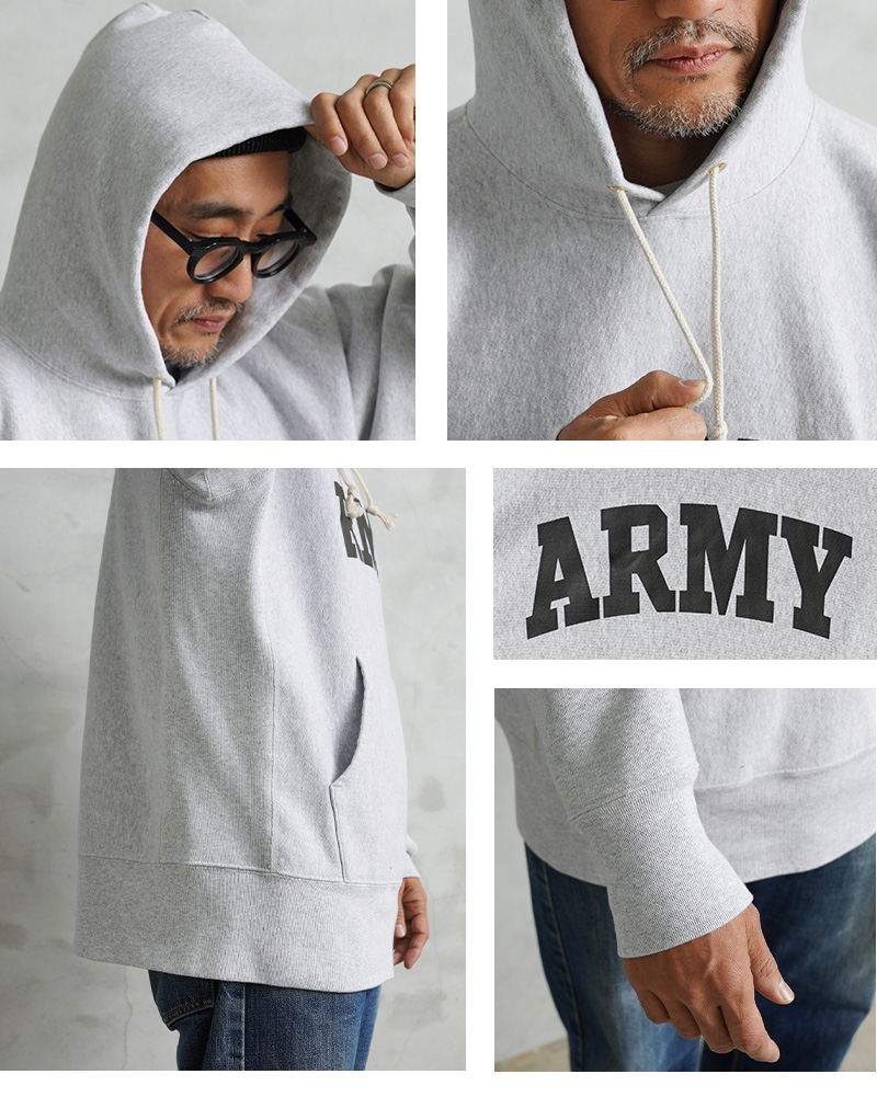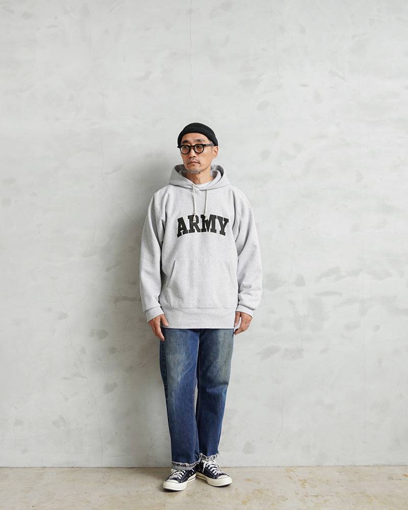 | 商品説明 | HOUSTON ヒューストン U.S.コットン ARMY プリント フーディー スウェットシャツのご紹介です。 品名:PRINT U.S.COTTON R/V HOODIE(ARMY) 品番:22268 HOUSTONから、脇にリブの切り替えが入った定番スタイルの、裏起毛フーディースウェットが登場しました。 ドライな質感のU.S.Aコットンを使用。再現性の難しい特徴的な杢感のグレーは糸から選定し、ビンテージスウェットを意識したアイテムです。 フロントには「ARMY」のインパクトあるプリント。ビンテージミリタリーのアーカイブを参考にした、存在感のある極厚ラバープリントです。 ややゆとりのあるシルエットに、カンガルーポケットやフードなど定番のカジュアルデザイン。脇にリブの切り替えが入ることで、横の縮みへの影響を少なくし、動きやすさにも配慮されています。左前裾にある【USA COTTON】のピスネームが程よいアクセント。 初めから着用しやすいよう、製品ワンウォッシュ+タンブラー加工入り。すでに何度か着用して肌に馴染んだかのような感覚を与え、こなれ感のある自然な着こなしが可能です。 ロゴが目を惹く、一枚でもインナーとしても優秀なプリントスウェット。スポーツやアウトドアシーン、ワンマイルウェアやルームウェアとしても、幅広く活躍する男女ともにおススメのアイテムです。 |