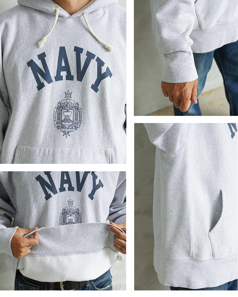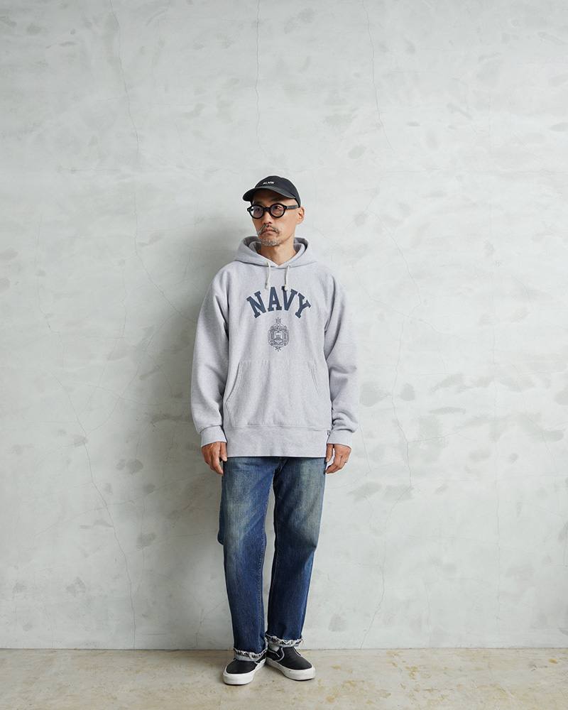 | 商品説明 | HOUSTON ヒューストン U.S.コットン NAVY プリント フーディー スウェットシャツのご紹介です。 品名:PRINT U.S.COTTON R/V HOODIE(NAVY) 品番:22312 HOUSTONから、脇にリブの切り替えが入った定番スタイルの、裏起毛フーディースウェットが登場しました。 ドライな質感のU.S.Aコットンを使用。再現性の難しい特徴的な杢感のグレーは糸から選定し、ビンテージスウェットを意識したアイテムです。 フロントには「NAVY」のロゴと、「USNA」(アメリカ合衆国海軍兵学校)の学章を組み合わせたインパクトあるプリント。実在するミリタリーアカデミーのロゴをモチーフに、ヴィンテージライクな雰囲気を演出します。 ややゆとりのあるシルエットに、カンガルーポケットやフードなど定番のカジュアルデザイン。脇にリブの切り替えが入ることで、横の縮みへの影響を少なくし、動きやすさにも配慮されています。左前裾にある【USA COTTON】のピスネームが程よいアクセント。 初めから着用しやすいよう、製品ワンウォッシュ+タンブラー加工入り。すでに何度か着用して肌に馴染んだかのような感覚を与え、こなれ感のある自然な着こなしが可能です。 ロゴが目を惹く、一枚でもインナーとしても優秀なプリントスウェット。スポーツやアウトドアシーン、ワンマイルウェアやルームウェアとしても、幅広く活躍する男女ともにオススメのアイテムです。 |