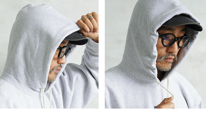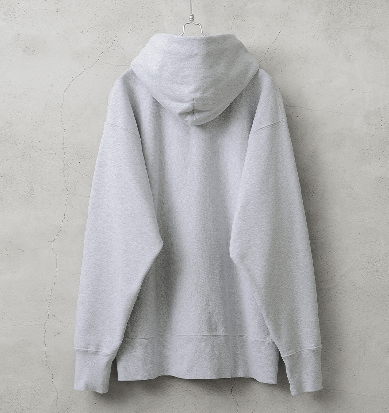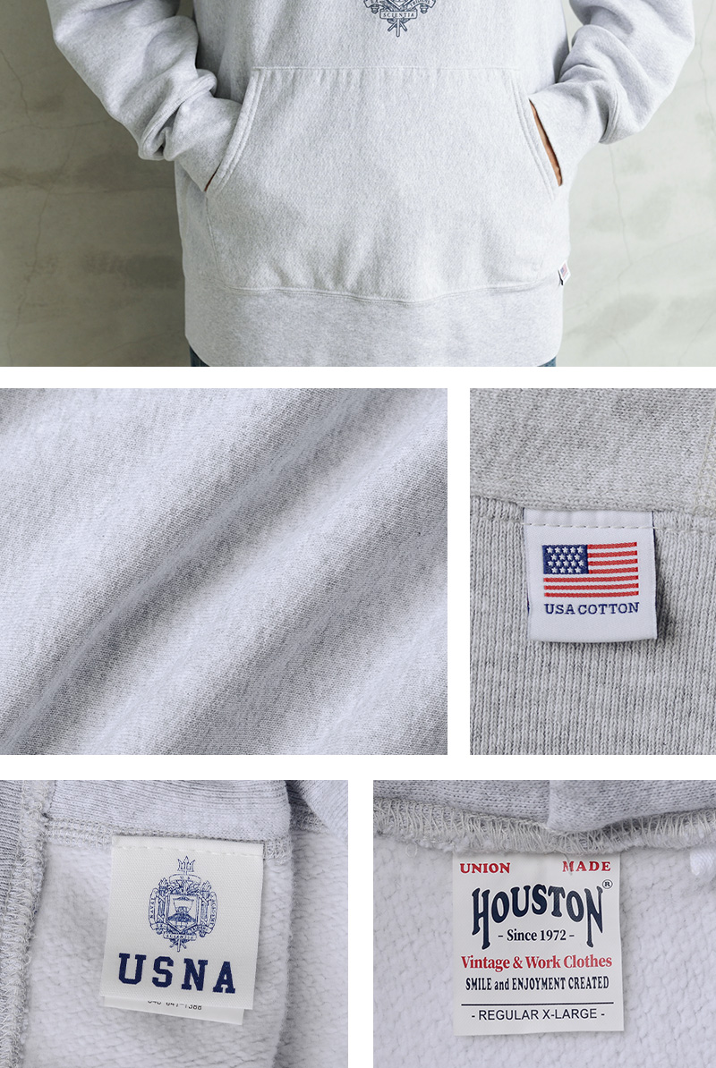 HOUSTONから、脇にリブの切り替えが入った定番スタイルの、裏起毛フーディースウェットが登場しました。ドライな質感のU.S.Aコットンを使用。再現性の難しい特徴的な杢感のグレーは糸から選定し、ビンテージスウェットを意識したアイテムです。