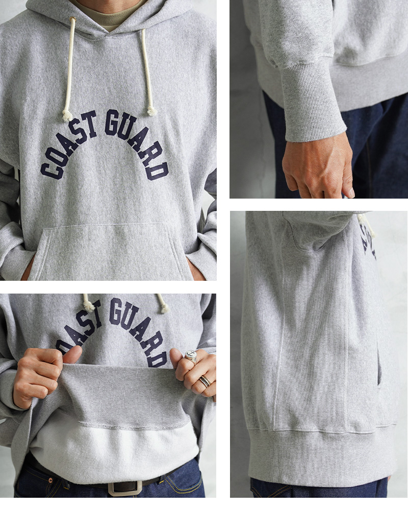 | 商品説明 | HOUSTON ヒューストン U.S.コットン COAST GUARD プリント フーディー スウェットシャツのご紹介です。 品名:PRINT U.S COTTON R/V HOODIE (COAST GUARD) 品番:22372 HOUSTONから、脇にリブの切り替えが入った定番スタイルの、裏起毛フーディースウェットが登場しました。 ドライな質感のU.S.Aコットンを使用。再現性の難しい特徴的な杢感のグレーは糸から選定し、ビンテージスウェットを意識したアイテムです。 フロントには「COAST GUARD(米国沿岸警備隊)」のインパクトあるプリント。 米国沿岸警備隊(United States Coast Guard)とは、アメリカの沿岸・海上での安全を守る国家機関。創設は1790年とアメリカで最も古い連邦政府組織の一つです。近年ではビンテージミリタリー&アカデミー系のロゴとしても希少性が高く、ミリタリーファンの間では密かな人気を誇ります。 ややゆとりのあるシルエットに、カンガルーポケットやフードなど定番のカジュアルデザイン。脇にリブの切り替えが入ることで、横の縮みへの影響を少なくし、動きやすさにも配慮されています。左前裾にある【USA COTTON】のピスネームが程よいアクセント。 初めから着用しやすいよう、製品ワンウォッシュ+タンブラー加工入り。すでに何度か着用して肌に馴染んだかのような感覚を与え、こなれ感のある自然な着こなしが可能です。 ロゴが目を惹く、一枚でもインナーとしても優秀なプリントスウェット。スポーツやアウトドアシーン、ワンマイルウェアやルームウェアとしても、幅広く活躍する男女ともにオススメのアイテムです。 |