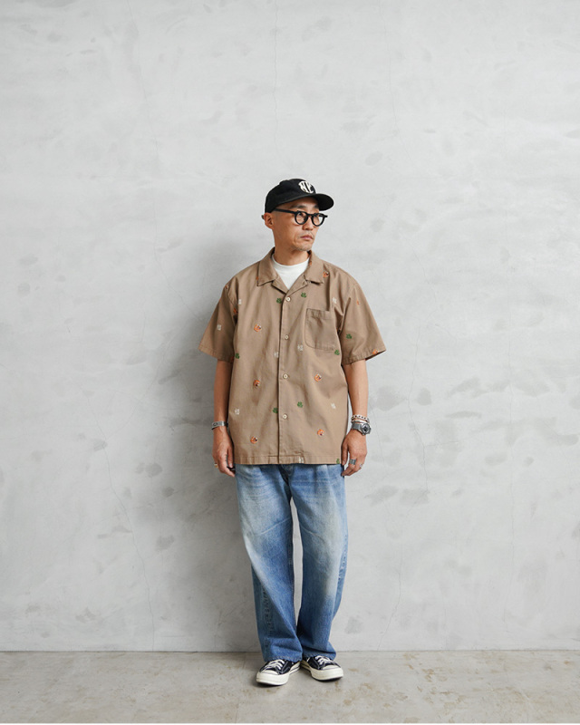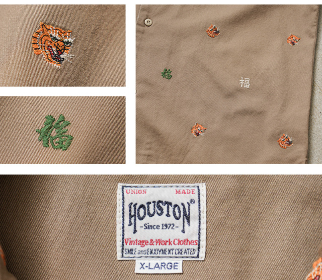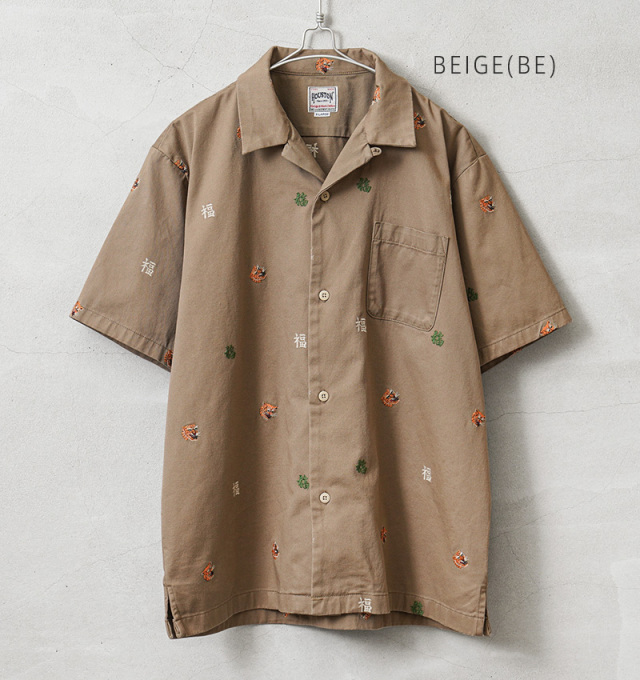 | 商品名 | HOUSTON ヒューストン 41244 ツイル 総柄刺繍 半袖シャツ |