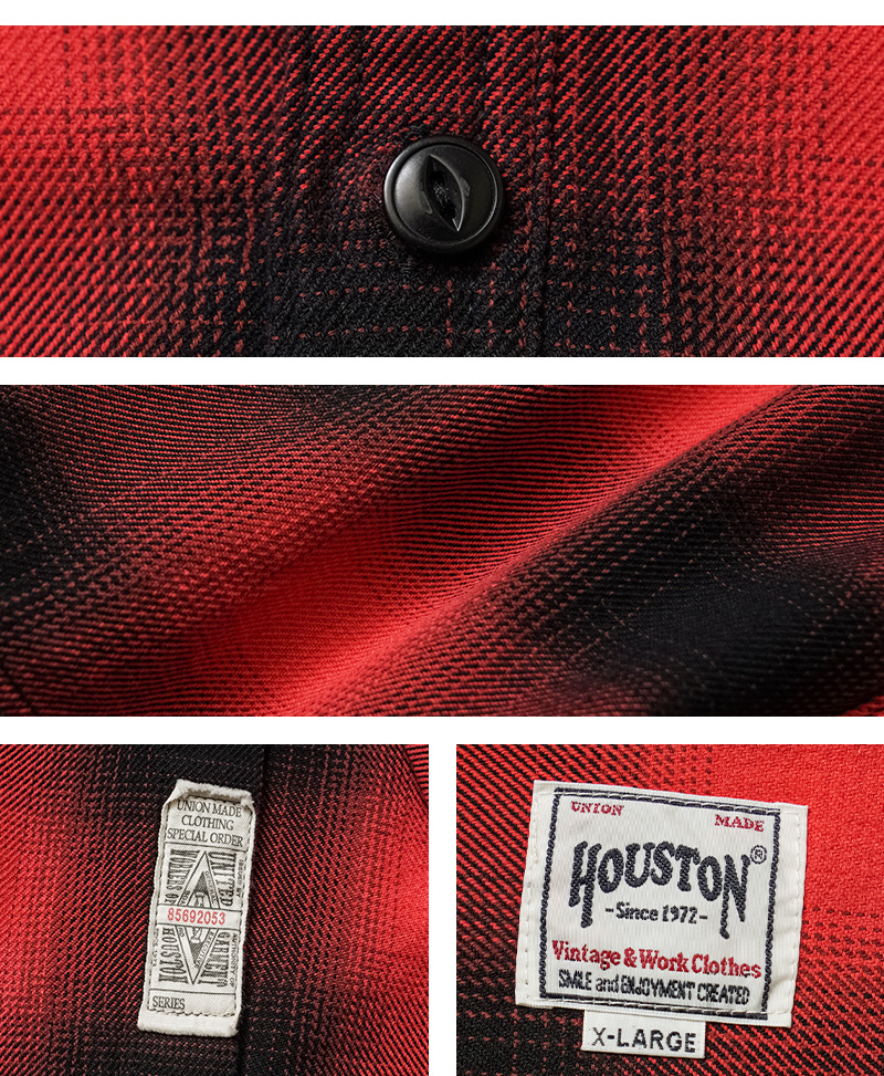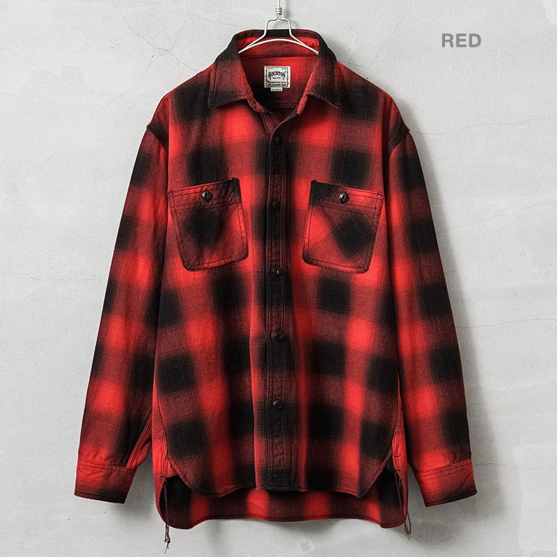 HOUSTONから、古き良きアメリカの魅力が詰まったオンブレチェックの丈夫なビエラシャツが登場しました。コットン100%のビエラフランネルは重厚で張りのある生地感で肌心地も良く、丈夫なつくりなので耐久性にも非常に優れています。裾サイドの空環仕上げ、前立裾のユニオンチケットなどヴィンテージライクなディテールが魅力的に仕上がっています。