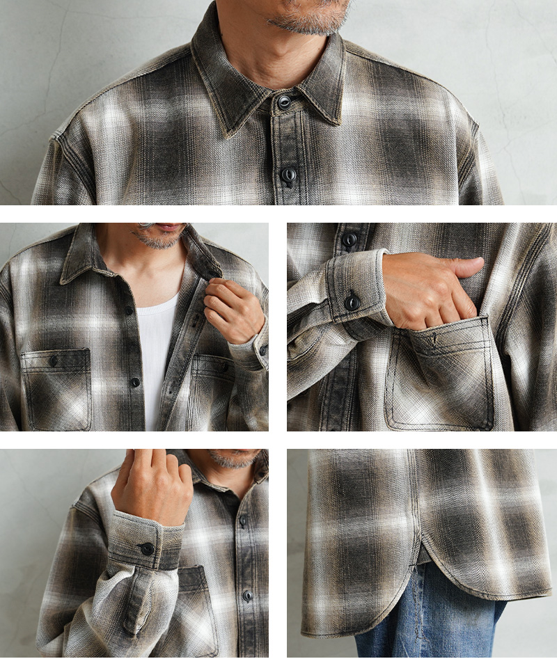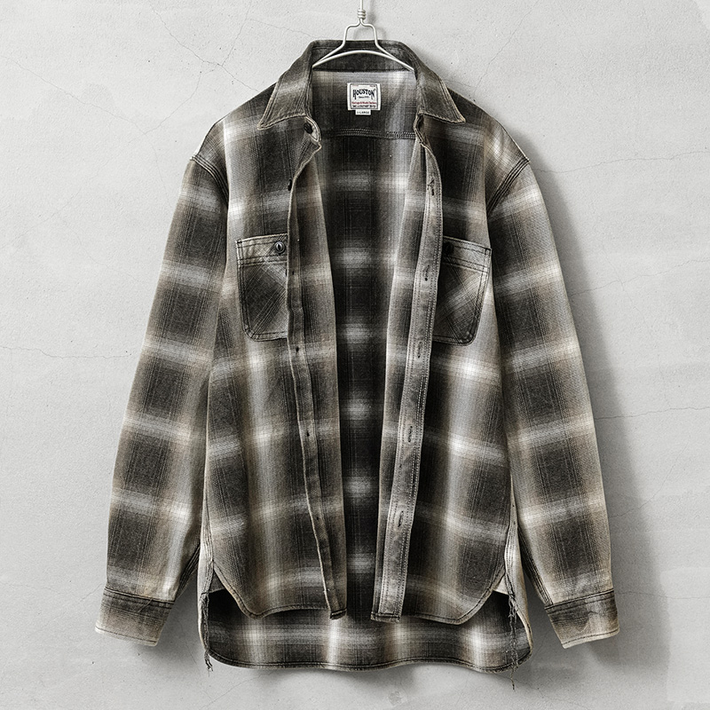 HOUSTONから、古き良きアメリカの魅力が詰まったオンブレチェックの丈夫なビエラシャツが登場しました。コットン100%のビエラフランネルは重厚で張りのある生地感で肌心地も良く、丈夫なつくりなので耐久性にも非常に優れています。こちらはビンテージ加工が施されているので、最初から長年着用し続けたかのような、こなれ感を演出できます。