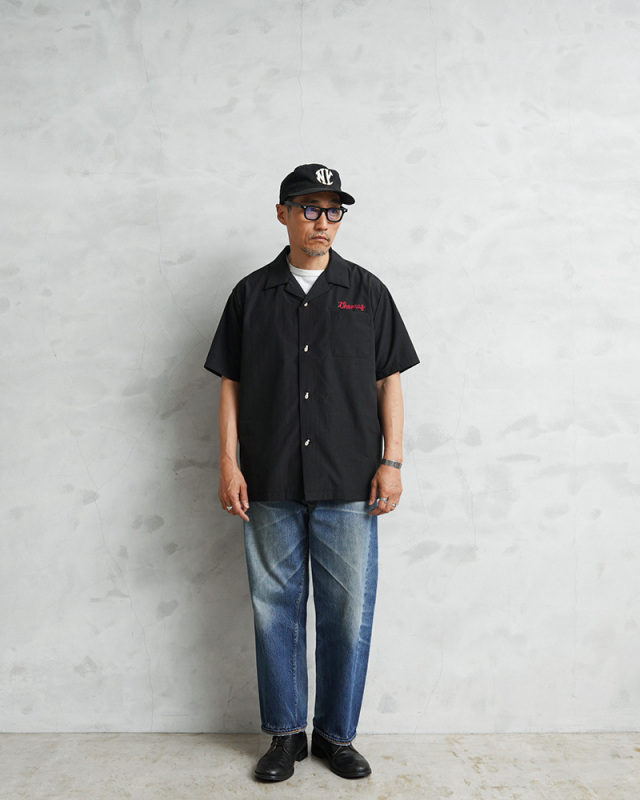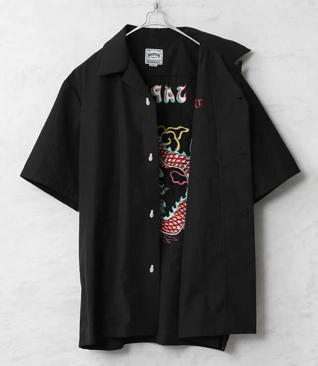 HOUSTONから、ヴィンテージスカジャンをサンプリングした、インパクト抜群のボーリングシャツの登場です。コットンを配合したサラリとしたツヤのある生地感が特徴。通気性、速乾性に大変優れ、快適に着用可能です。フロントには胸元にさりげなくロゴ刺繍を配置。首元は開放感のあるオープンカラー仕様で、程よくゆとりのあるシルエットと相まってリラックス感のある着こなしが楽しめます。