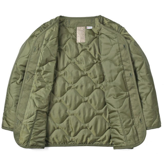 | 商品説明 | HOUSTON ヒューストン M-65フィールドジャケット THINSULATE(シンサレート)ライナーのご紹介です。 品番:50909 HOUSTONより、ポリエステル製リップストップ素材を使ったM-65フィールドジャケットライナーが登場。 同社の「M-65フィールドジャケット 50815」向けのアイテムです。細かなディテールはそのままに、中綿には3M社の高機能中綿Thinsulate(シンサレート)™を採用。標準で付属しているライナーよりも優れた防寒性・保湿性を発揮します。 カラーはBLACK・OLIVEの2色展開。実物と同じくヘチマキルティングが施されており、中綿が偏ってしまうのを防いでいます。ボディの左右にはボタン付きのパッチポケットが追加されており、ライナー単体でも着用しやすいデザインにアレンジされています。 |